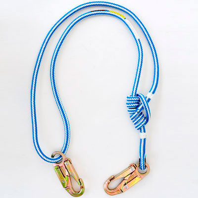 Adj Buckstrap Blue Streak Steel Snaps 4' to 7'. This relatively outdated lanyard style utilizes a friction-creating Prusik folded midline to provide the user with adjustment and full security at minimal cost. Designed originally for linesmen scaling telephone poles (which, of course, have minimal taper), the buckstrap required very little adjustment. Although used frequently by tree care workers, the buckstrap provides limited range on dramatically tapering trees. A secondary limitation of this lanyard is that the Prusik hitch (adjusting mechanism) will sometimes be located in a difficult-to-reach location on the opposite side of the tree because of the way the system is adjusted. If you like or are used to this type of lanyard, consider a Prusik-adjusting lanyard that keeps the Prusik on your hip!