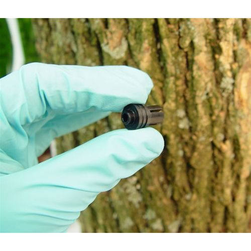 The self sealing surgical septum prevents product leakage and product “blow back.” This prevents lost or wasted product. The arborjet system minimizes the number of injection sites. “Closed” injection site limits wounding, speeds healing, inhibits decay or infection from entering site and prevents site from becoming vector for insects.