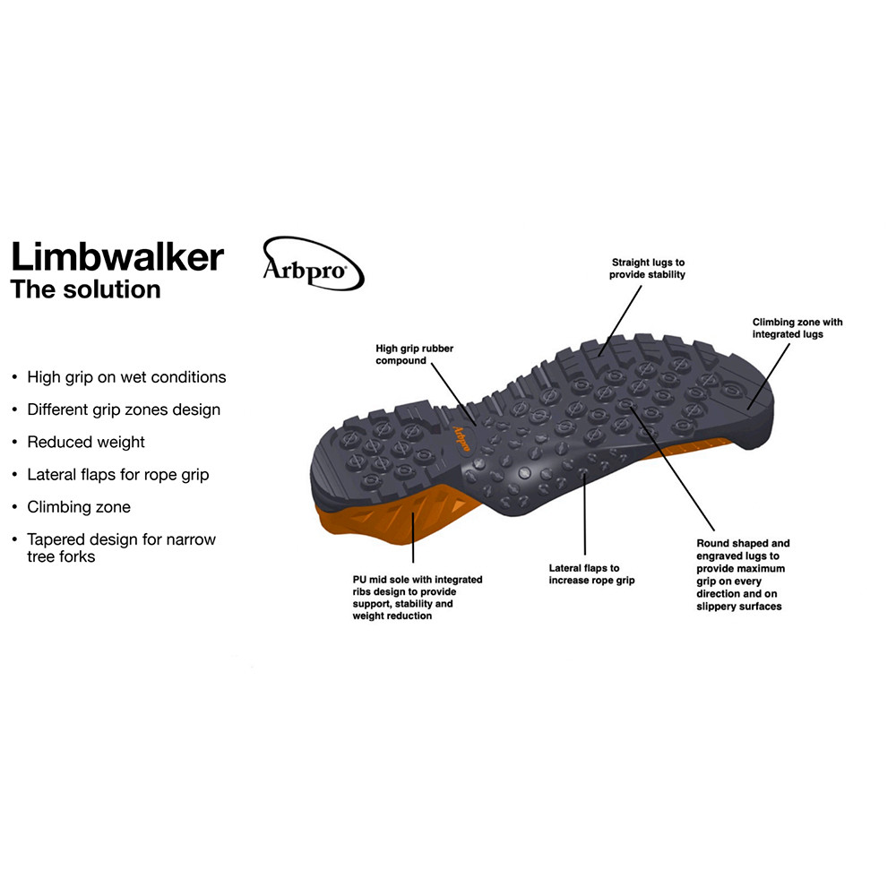 Introducing the Arbpro NEO Climbing boots equipped with Limbwalker soles. These boots are low-cut to allow for maximum movement and flexibility at the ankle. The first sole specially designed for arborist boots, Limbwalker™ soles are made for maximum grip and 360° traction.