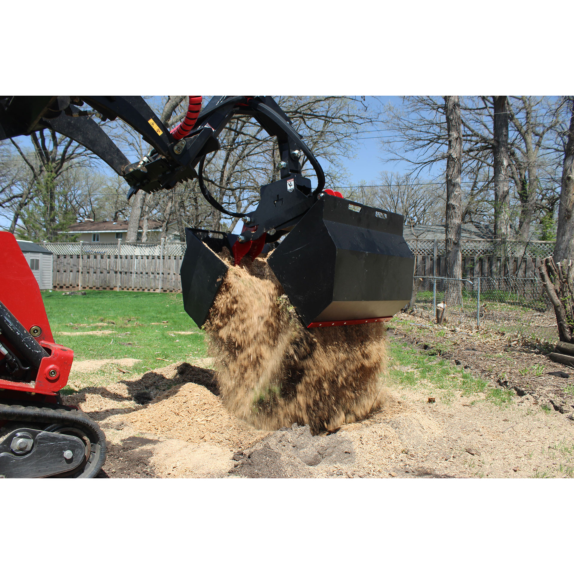 "Clamshells” easily attach to your Branch Manager Grapple with pins for easy pick-up of stump chips, rakings, mulch, loose dirt, and gravel. If you're looking to move some serious stuff, then you're looking for the Branch Manager Mini Grapple Clamshell Scoops. The quick attachment system allows you to go from making messes to cleaning them up in minutes. Made from powder-coated 12 gauge steel, the Clamshell Scoops will help you clean up for years. Ships directly from the manufacturer via semi-truck. Please allow 1 to 2 weeks for delivery. The T1060 Clamshell is specifically made for the following Branch Manager Grapple Models: T1001, T1010, T1031, T1036, T2001, T2010, T3001, T3005, and T3010.
