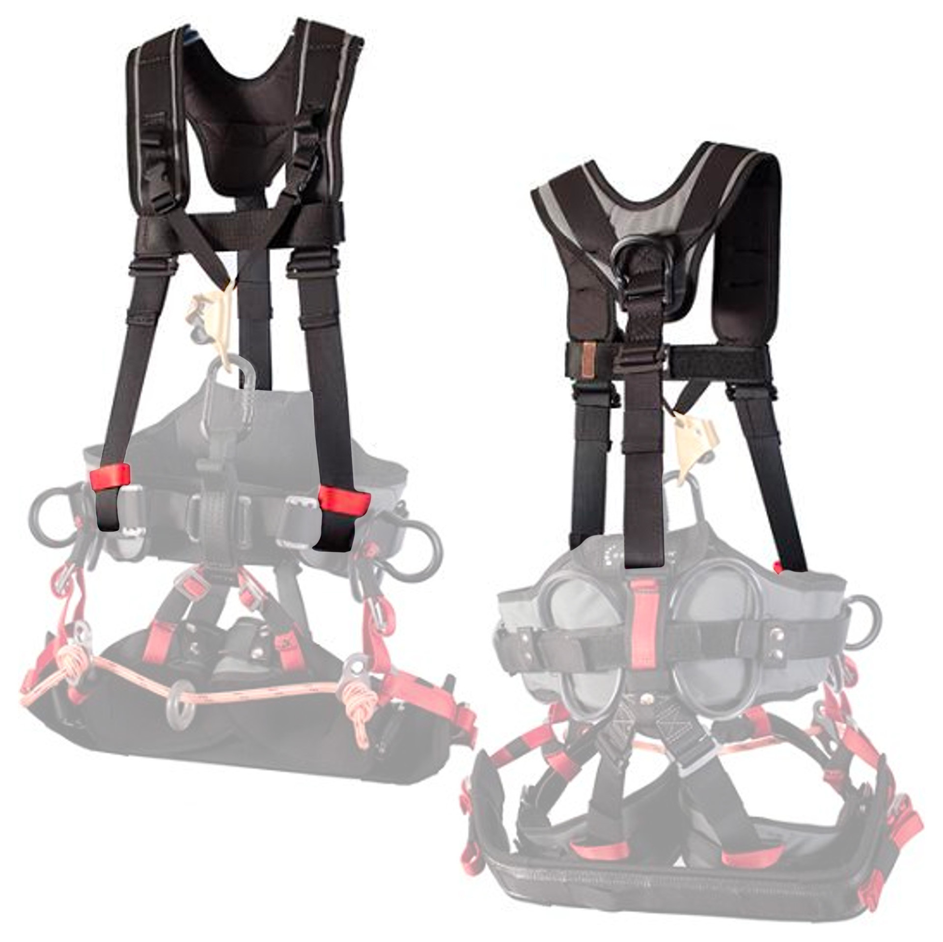 • Pads that are stitched to the harness webbing to prevent shifting and improve easy donning of harness.