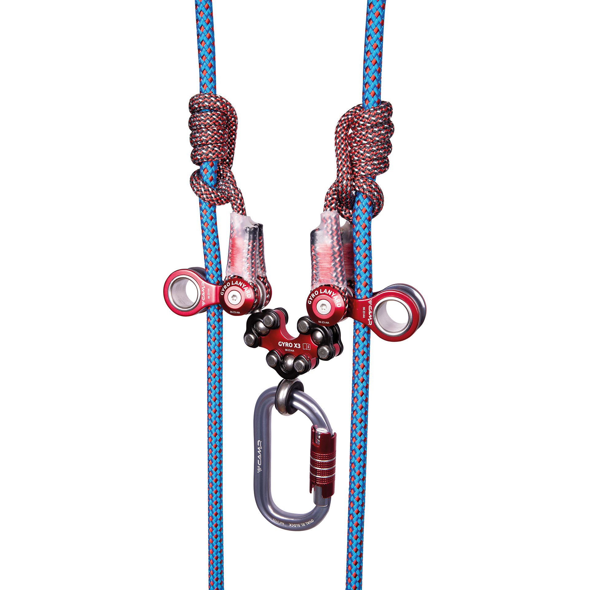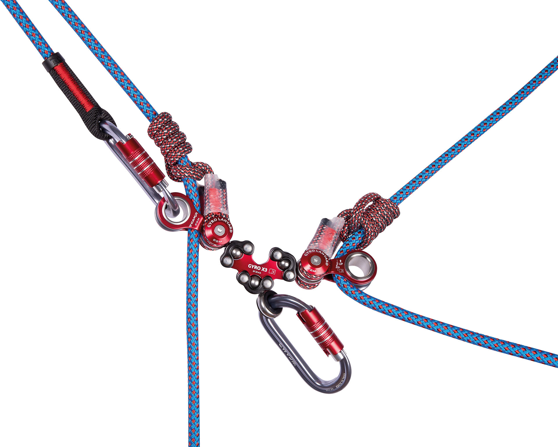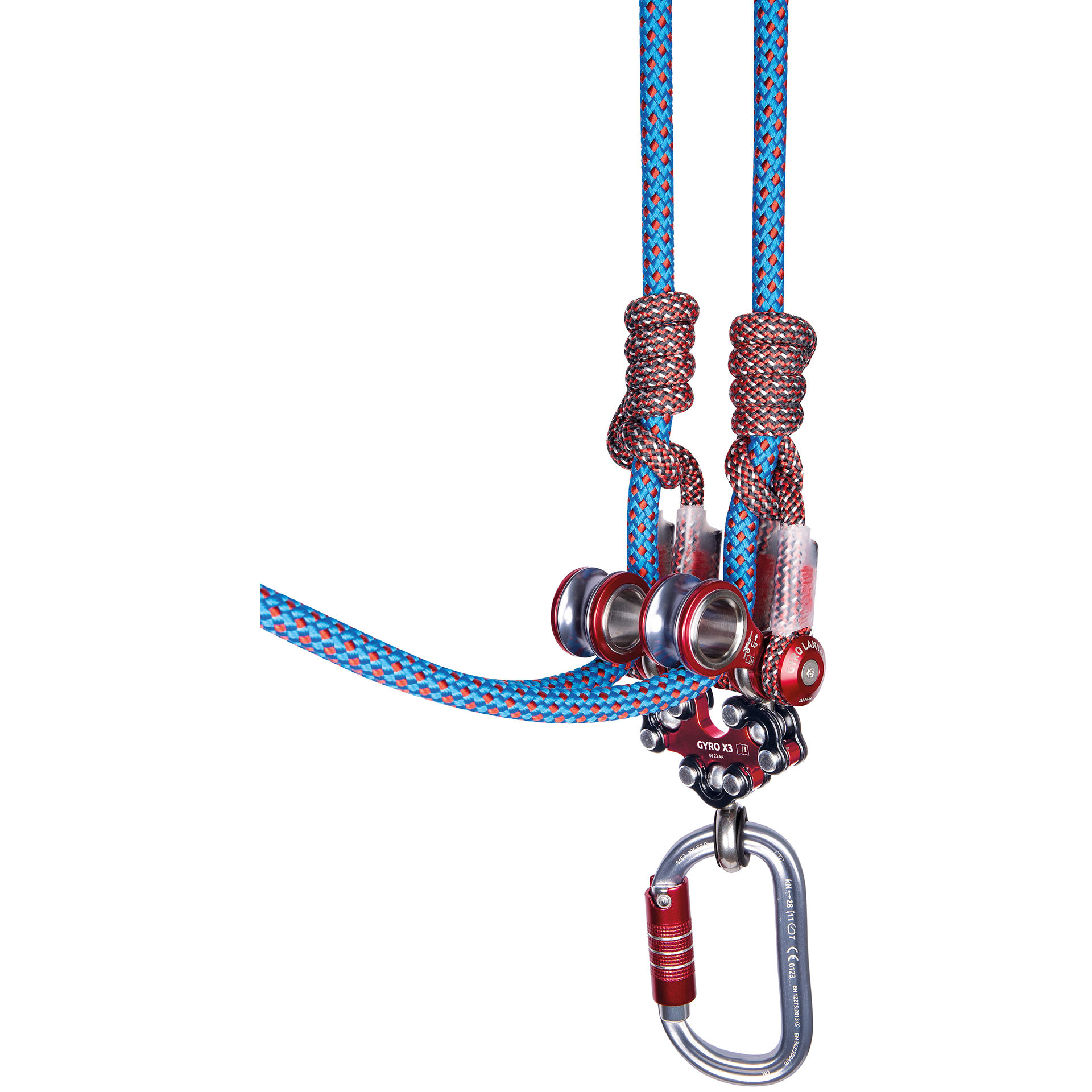 A unique double lanyard for tree climbing. The Gyro Lanyard Double combines two length adjustment systems into a single connection point with the innovative Gyro X3 swivel device. The Gyro uniquely allows the user to rotate and tilt freely on the single attachment point even while using both lanyard legs. The retrieving pulley features a minimal design and is equipped with a built-in secondary attachment point. Soft 8 mm polyesteraramid cord integrates with the rope for smooth, precise, and secure length adjustment. Pre-assembled with a Michoacan hitch also certified with the Catalyst and Distel for the best possibility of customization.