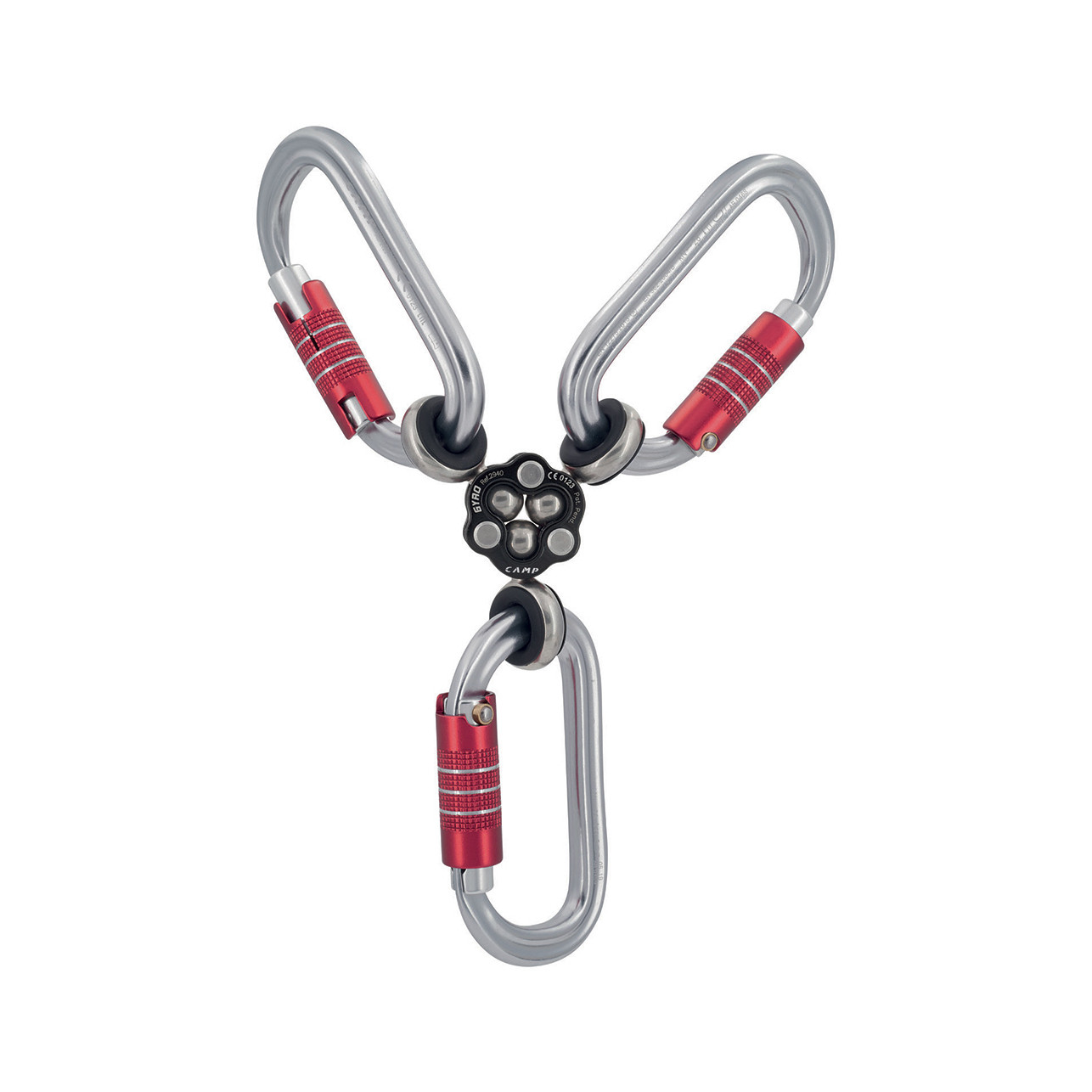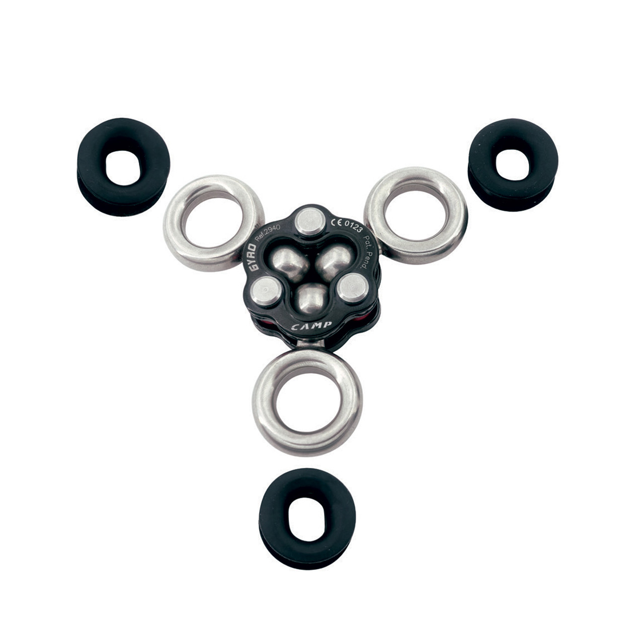 A compact and extremely versatile rigging system featuring Camp's proprietary triple swivel design. The Gyro swivel rotates at all three connection points which allows for