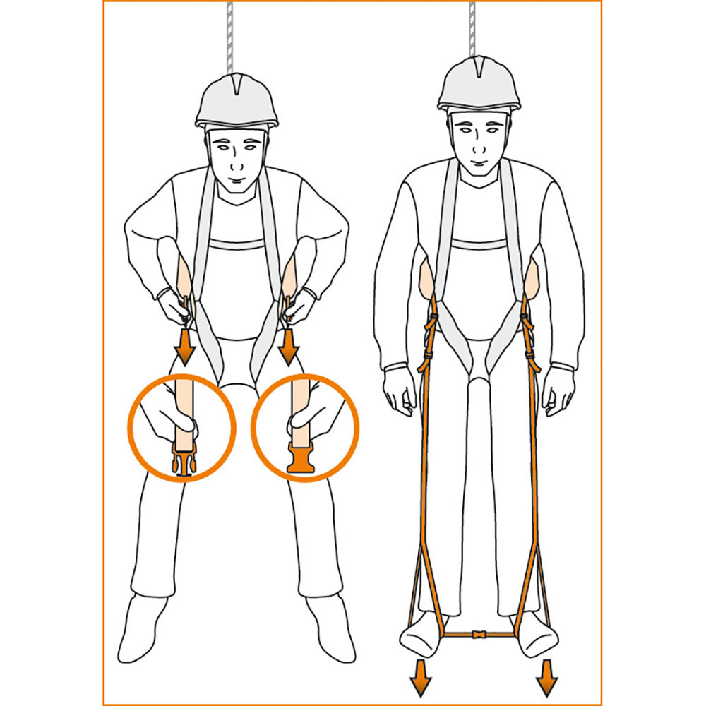 A pair of foot loops designed to help prevent suspension trauma in the event of a fall or during prolonged hanging. Can be attached to any full body harness. The loops are enclosed in two small pouches to be unpacked and positioned in a way that allows the worker to step into the straps and reduce the pressure of the harness on the body and promote blood circulation. Reusable.
