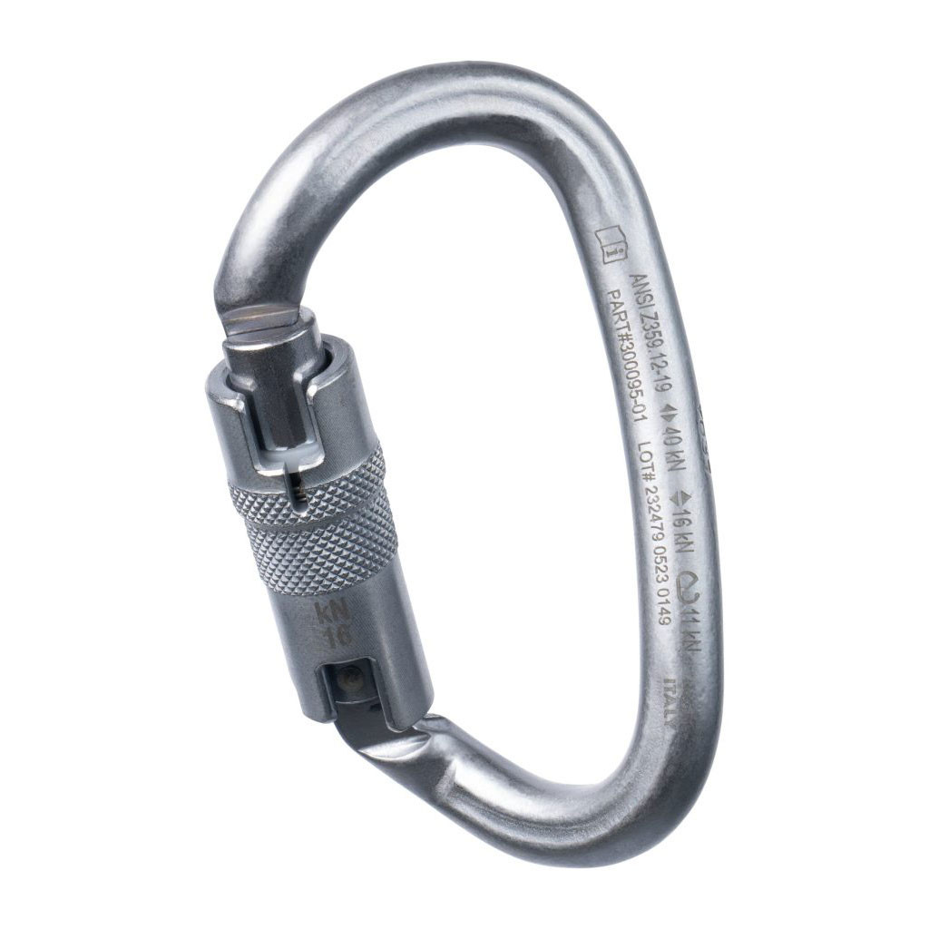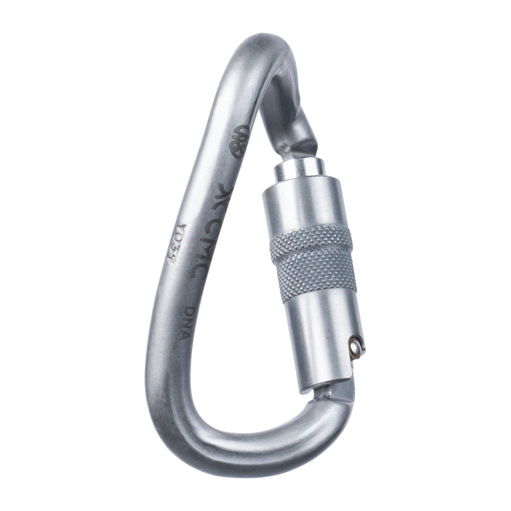 The DNA Carabiners are unique “helical-shaped” connectors with a twisted carbon steel body and circular bar. This twist enables 90° rotation of any connected device for optimal alignment and offset load management. Ideal for use with descenders, rope clamps, progress capture devices, fall arresters, and the Double CLUTCH. When used in the Double CLUTCH TTRS, the DNA optimizes CLUTCH handle alignment to allow a single operator to manage both CLUTCH handles for simultaneous twin tension control. Carbon steel construction is durable with high tensile strength and auto-locking gate provides the safety of 3 movements to open: lift, turn, and push.