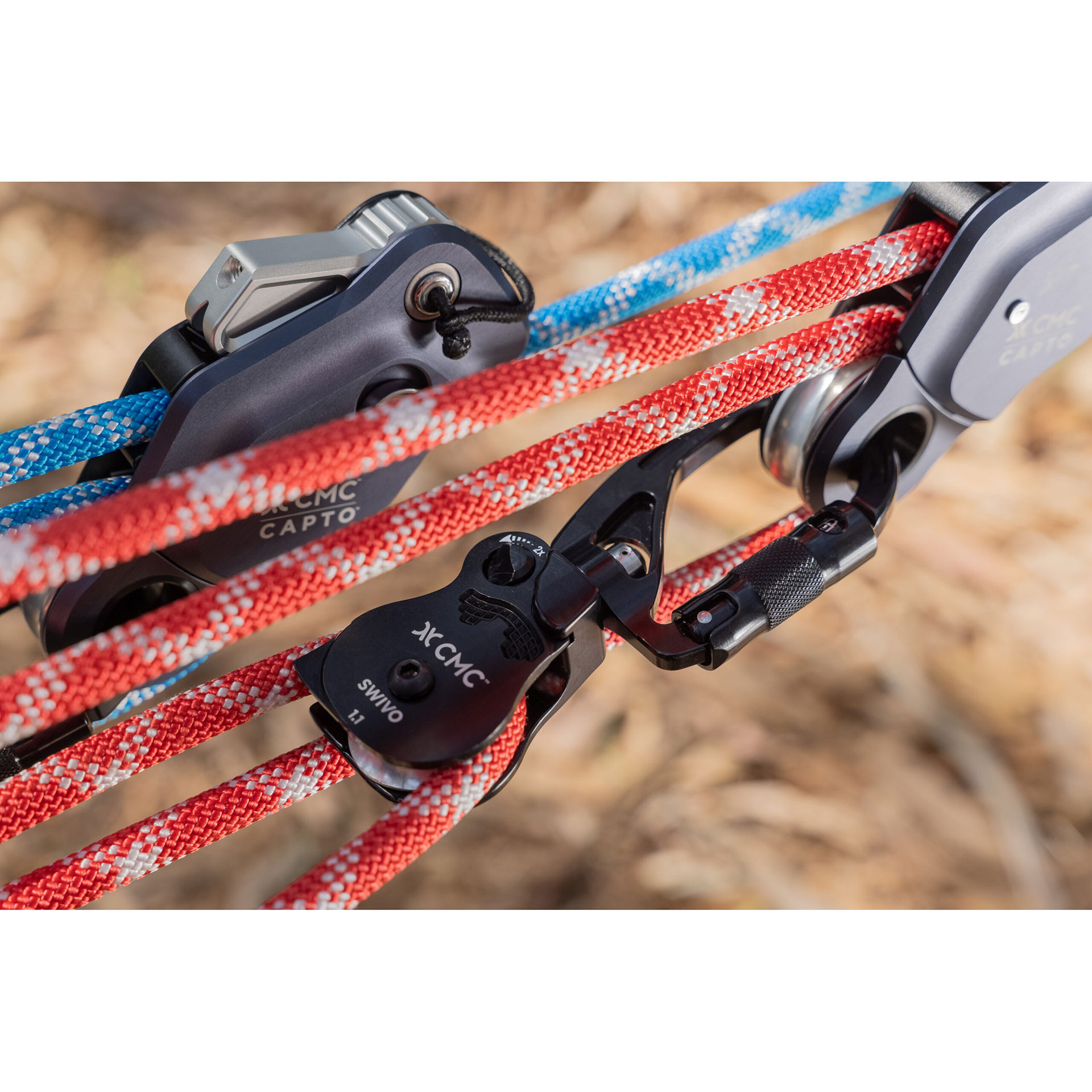 Its rounded carabiner frame clips easily into the CAPTO becket and other wide attachment points, improving load distribution and reducing the risk of binding. SWIVO’s integrated components allow it to simplify rigging, maximize travel, and create seamless transitions. When paired with the CAPTO, SWIVO enables rapid conversion from a 3:1 to a 5:1, increasing ease and efficiency for haul teams.