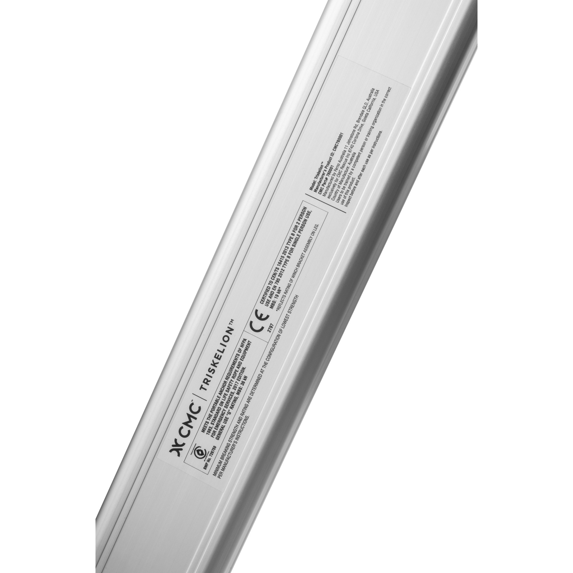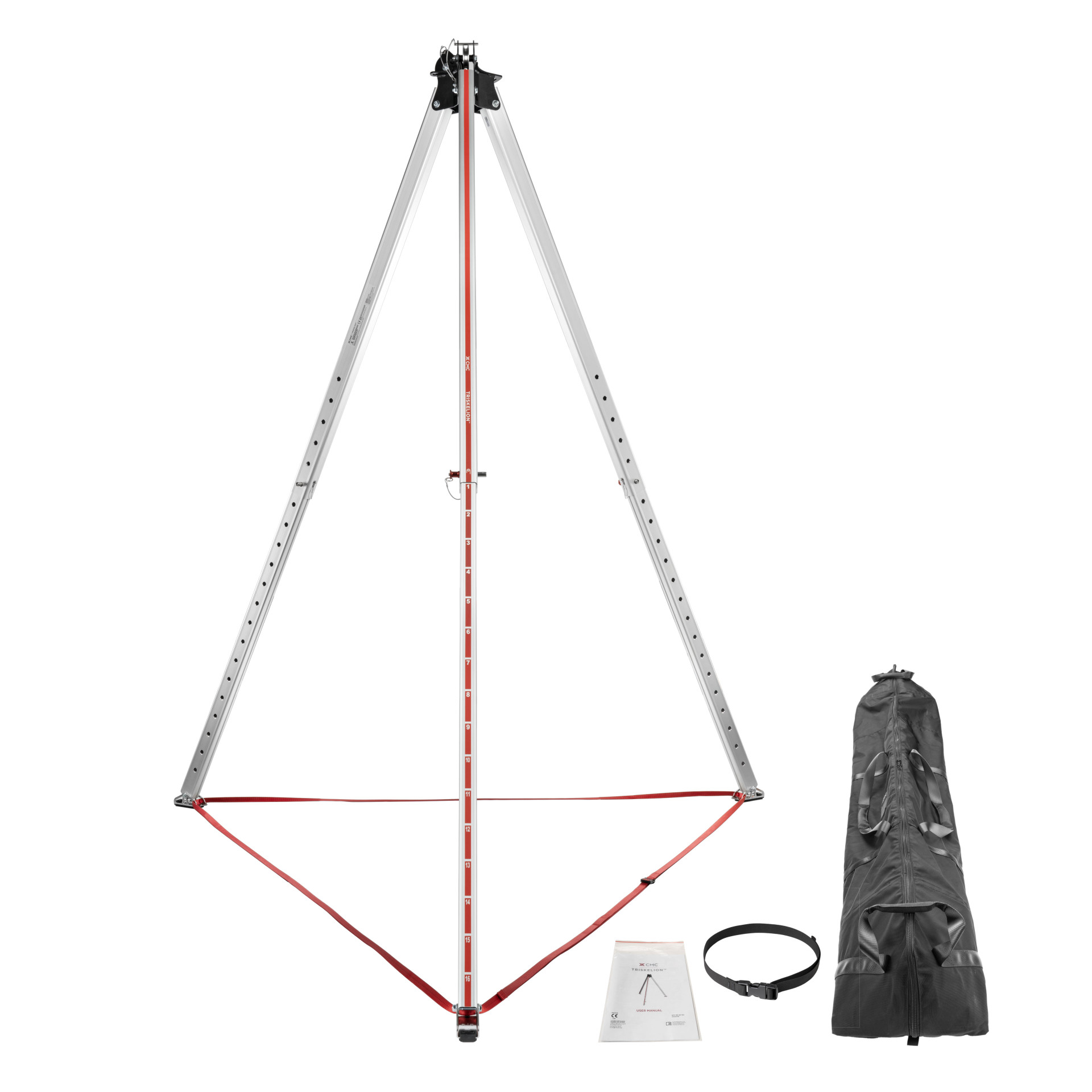 The CMC Triskelion's impressive working height range adapts to fit low-clearance areas and extends to haul patients in full-size litters. Unique features include its compatibility with cable and rope up to 13 mm (1/2 in), anchor points for pulley systems, multiple winch mounting options, rectangular legs with built-in stoppers, tethered push pins, high contrast graphics, pivoting feet, quick-connect webbing hobble strap, and reinforced carry bag for single or two-person transport. The CMC Triskelion is also supported by thoughtful accessories that enhance its capabilities and make it even easier to use.