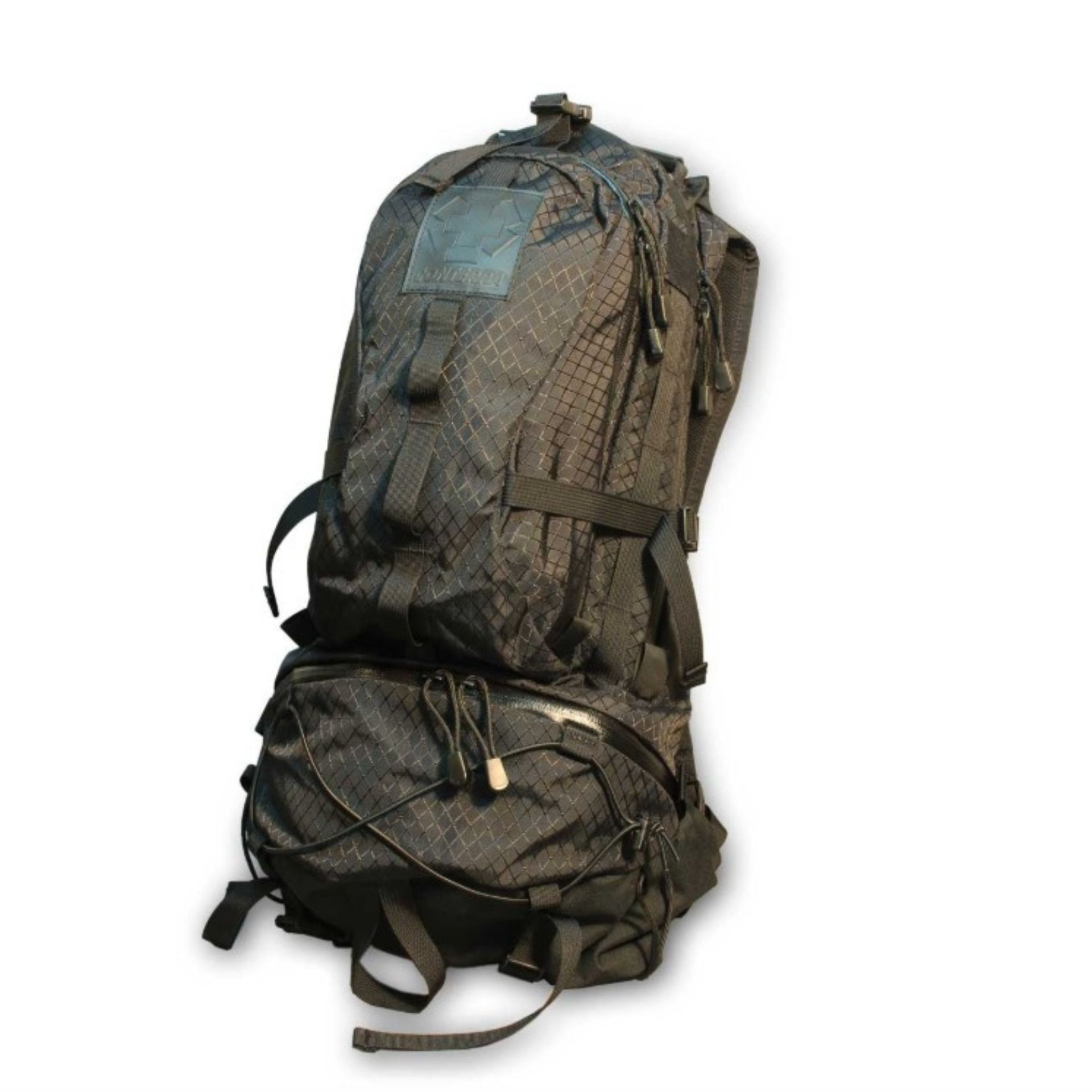 The Crossbow II is built from Conterra's Diamond Plate ripstop pack cloth and 500 denier Cordura Nylon. It has a three pocket configuration for clean packing: a large main compartment, a roomy bottom compartment and a back pocket lined with hook and loop compatible fabric for Conterra's M.O.S. organizational pockets (sold separately) and two attachment points for optional IDM pockets. The divider between the large main compartment and the bottom compartment can be opened to carry longer items inside the pack.
