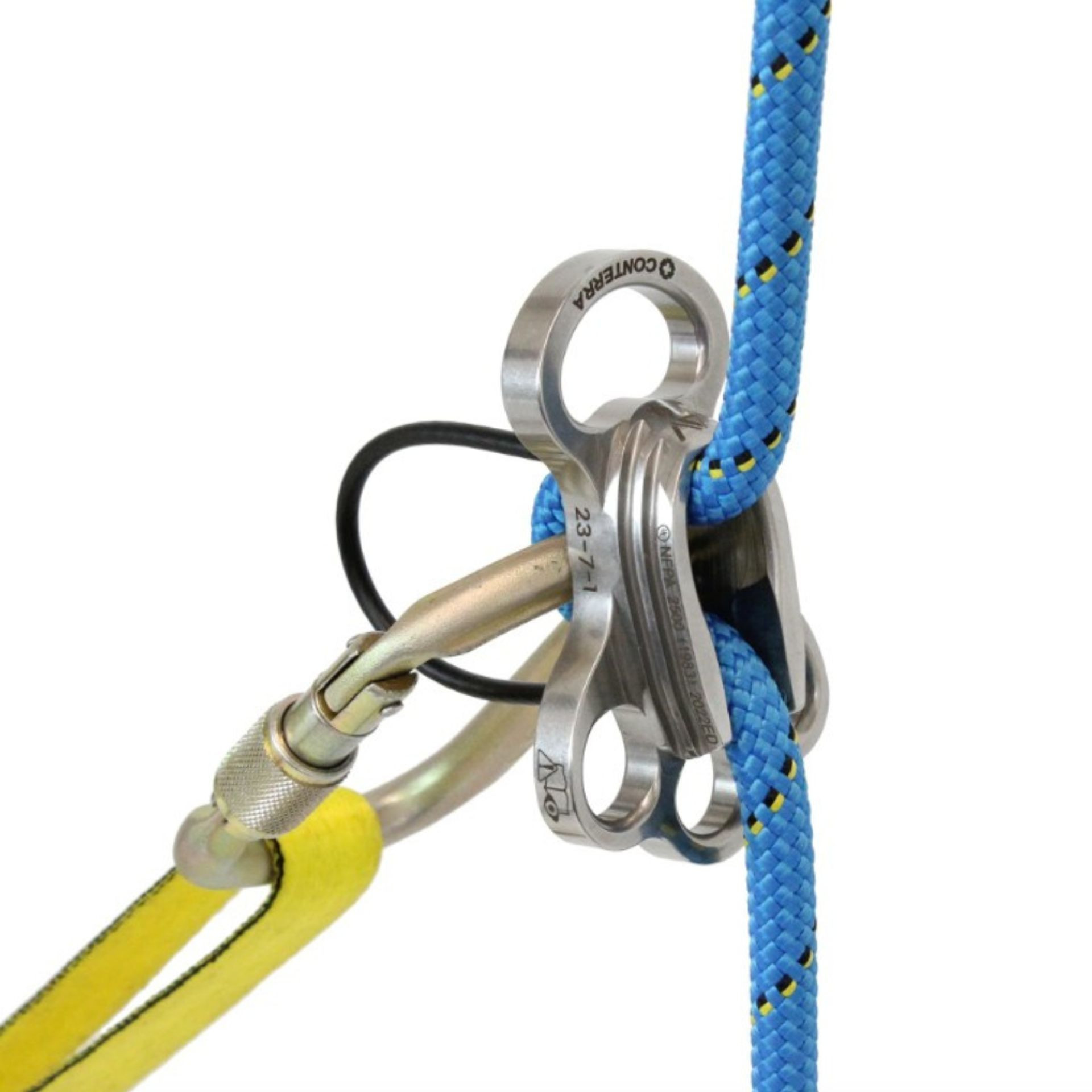 The Delta V FR is proudly machined from solid stainless steel billet stock in Conterra's Bellingham, WA ISO 9001 facility. The Delta V FR works with 11 to 12.5mm ropes and weighs in at just 240g (8.5oz). UL tested and dual certified as NFPA 1983 G (general use) for both Descent Control Device and Auxiliary Equipment.