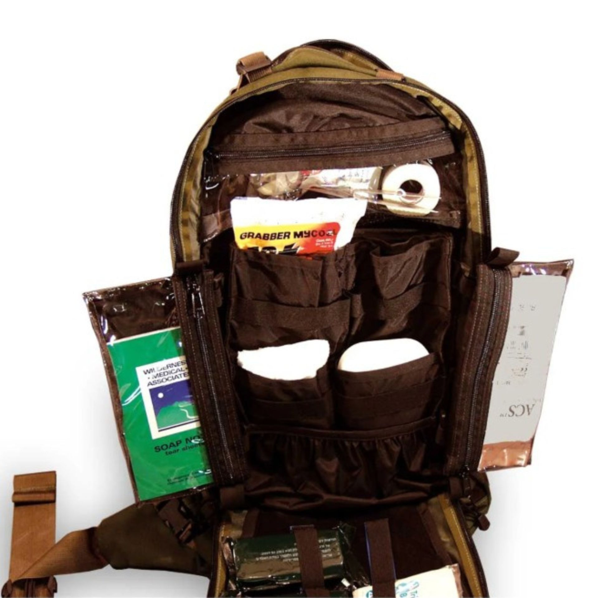 Medical supplies pictured are not included. Pack only.