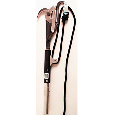 Pruner HEAD & ADAPTER/ Corona Bull Lopper, 1 1/2" cutting capacity; Bypass cutting action (knife cuts across anvil) • 1 1/2" cutting capacity provided by long arm and double pulley action, cord included. This heaviest in our pole lopper line produces triple cutting power by utilizing a long lever arm and compound rope action to cut branches up to 1.5 inches. 16' Pruner Cord, thick, most weather-resistant polypropylene pull rope and wood grip. Built-in ferrule fits TP 6881 poles snap-button. Can also be attached to other 1 1⁄4 inch diameter poles by drilling holes in pole and adding fasteners (not included)