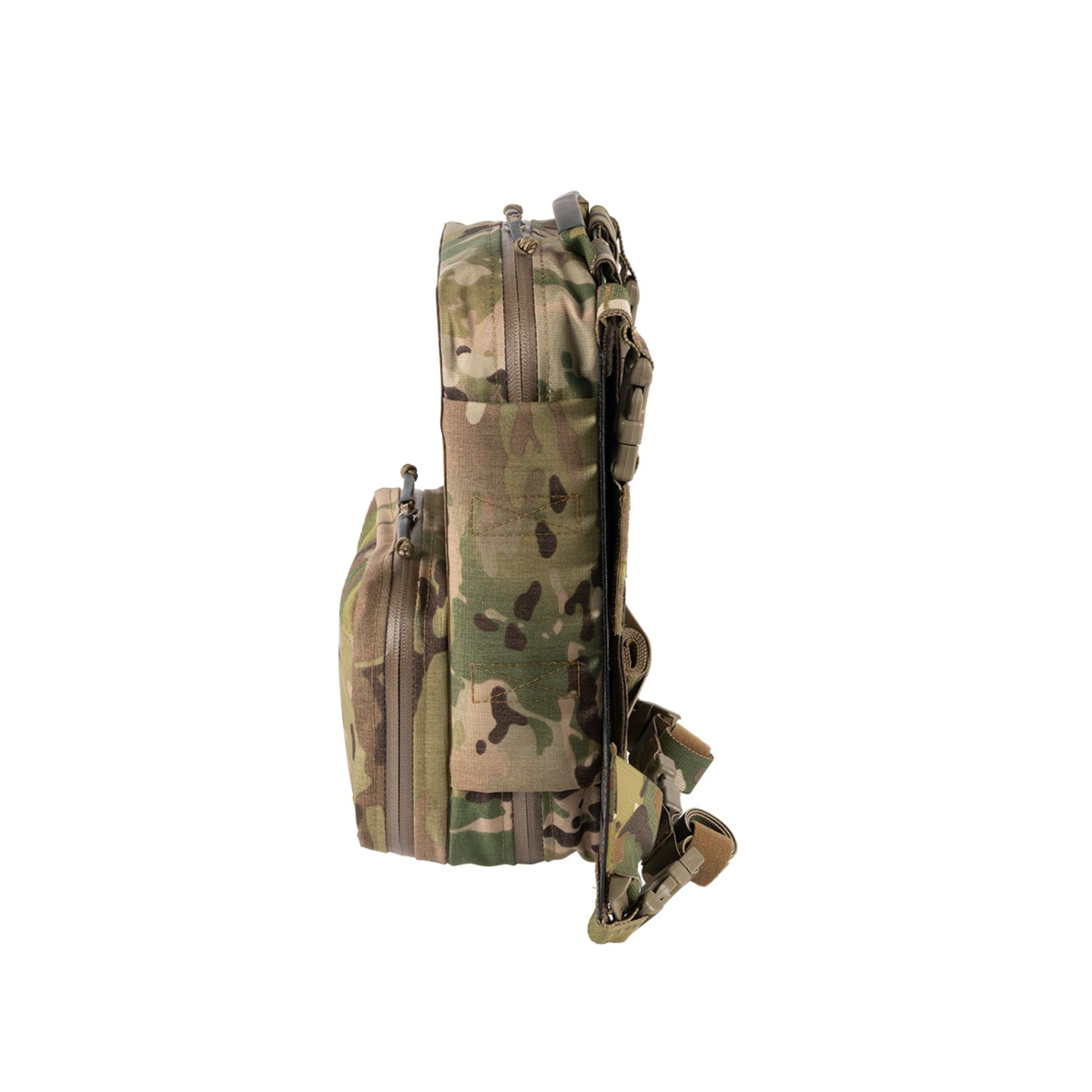 The DCR 7L has flat straps for when it’s time to get on the move, and quick-release buckles to easily drop the panel for urgent patients. It provides the wearer with a virtually unnoticed med bag that shifts weight directly through the back plates.