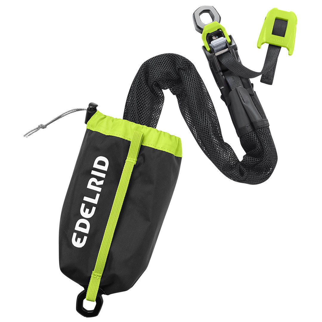 The KAA is a self contained mechanical advantage system for tensioning lines or lifting people during rescues. In addition, as the KAA is certified to EN 354, it can be used for workplace stabilization, as a restraint system (open/closed), and for controlled lowering. Its strap-based construction makes it the most compact and lightweight system on the market. Depending on the orientation, it offers a 4:1 or 5:1 lifting ratio with an efficiency of 91%. The KAA is packaged compactly and ready for immediate use, so that no valuable time is lost when it is required. A swivel is provided at each end to prevent the system from twisting. The hand lever on the draw cord makes it easier to pull and can also be used as a lowering lever.