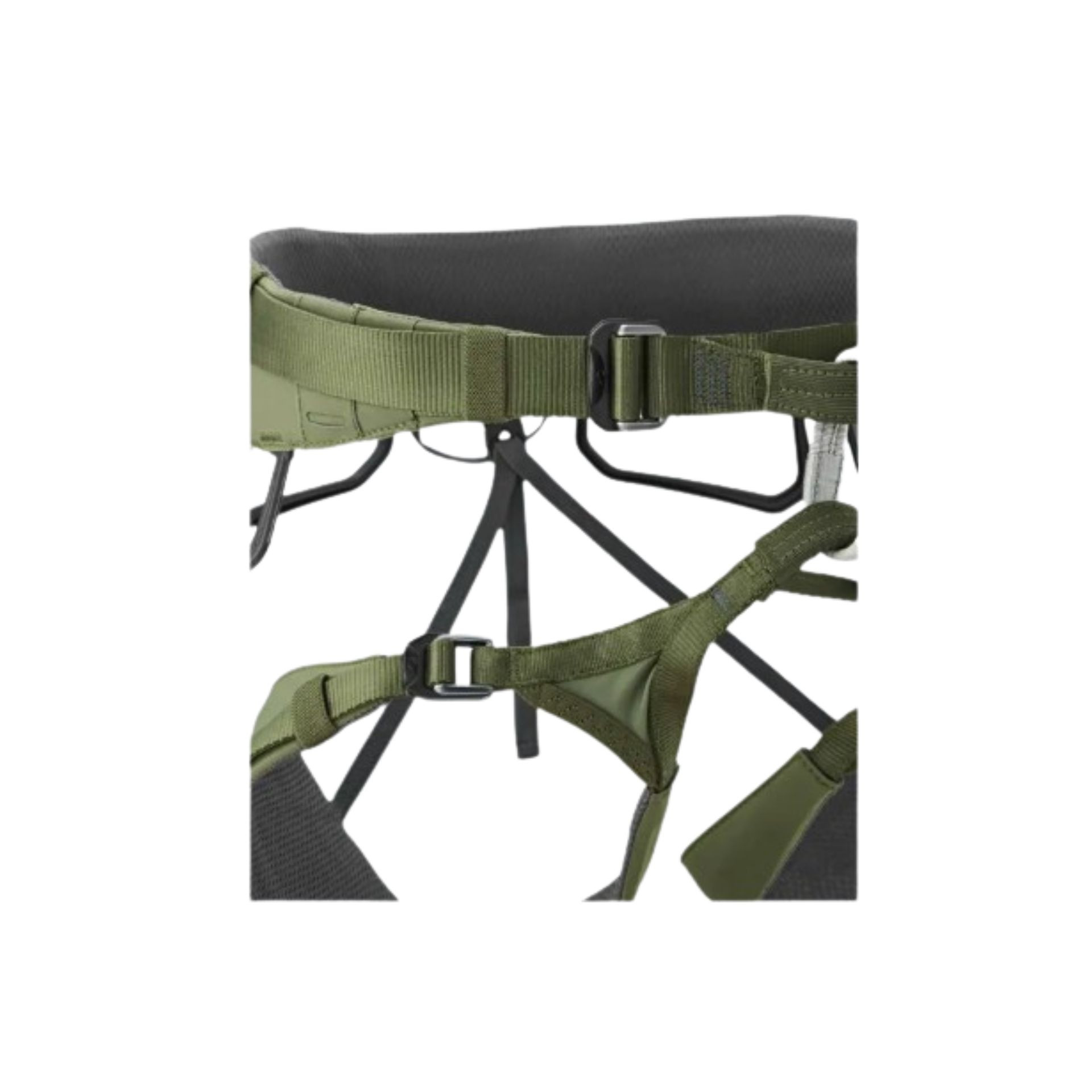 Comfortable, fully equipped and robust hip belt for use in the mountains and for fall protection. The TAKURO is particularly suitable for missions by army mountain guides and alpine special forces. The three aluminum Slide Block buckles on the waist belt and leg loops can be fully opened, making it easy to put on and adjust to individual needs. The Center Fit construction ensures easy, central positioning of the hip pad and the contrasting tie-in loop, which consists of a Dyneema core and polyamide sheath. Four large and stiffened material loops and one flat material loop on the back along with four mounting options for material carabiners or ice screw clips offer plenty of storage space and good options for organizing equipment.