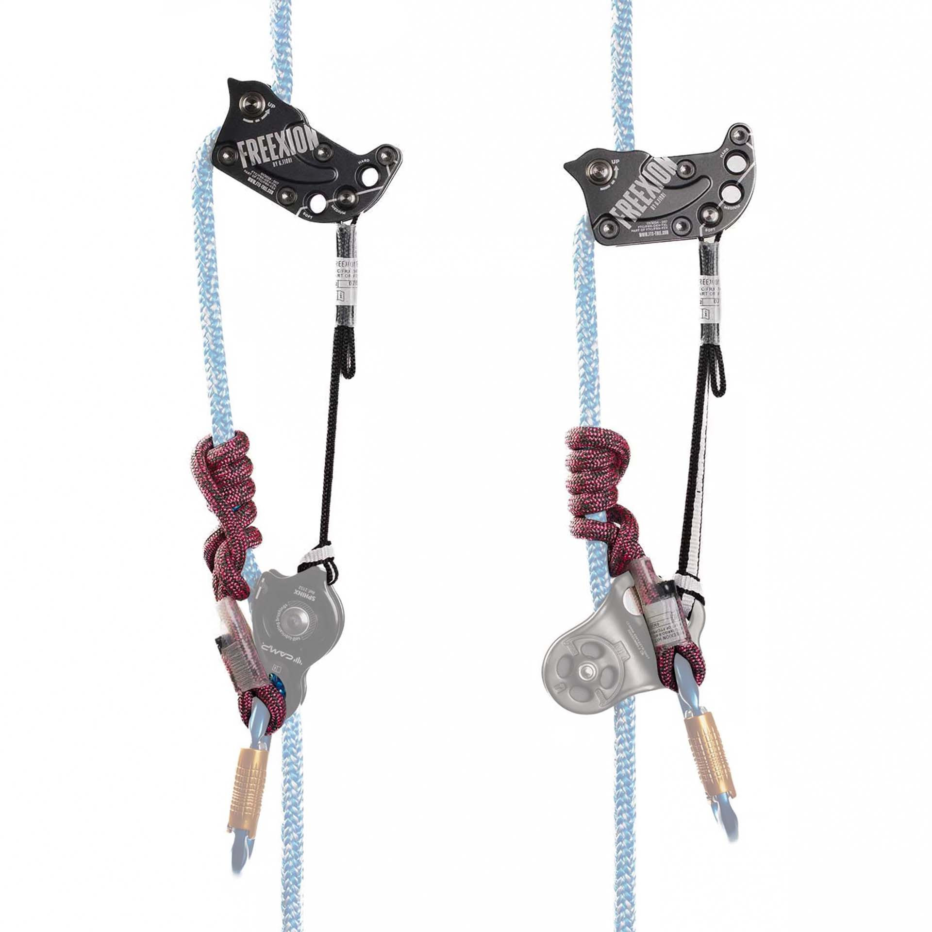 With a secured opening of the front pin, the FREEXION can be installed in the middle of the rope for easy set-up. The FREEXION is the first system that doesn’t need to be taken off the rope or taken apart to change the friction. You can change the friction at any time, in just a few seconds, or reduce the load on the friction hitch: no need for tools, just press both ends of a double button. It's so practical!
