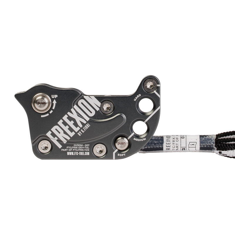 For example : High up in great trees, with a heavy rope weight, you pull the tether to set the selector on the soft position and lessen the friction. Once the rope weight is lighter, a little further down the tree, you can set the position back to medium or hard and increase the braking. You can also climb in the morning with a dry rope in the hard position and in the rain switch to soft position because of slight diameter increase induced by the changing weather conditions.