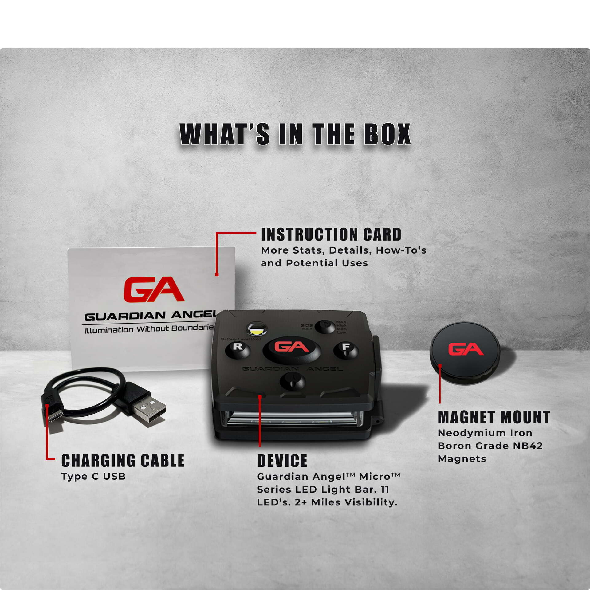 - Built in Neodymium magnet and corresponding magnetic base mount (included) can be attached to any clothing