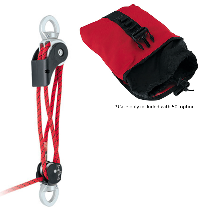 Available with 50' length only: Nylon case is industrial-grade ballistic nylon with a locking buckle. The case includes a drawstring and drain grommets to separate the unit and line for proper deployment and line drying.
