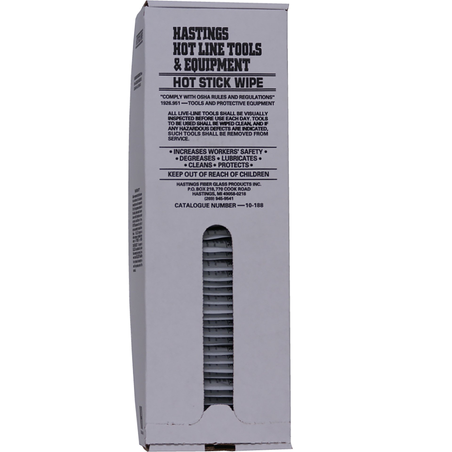 Hastings Hot Stick Wipes are designed for the daily maintenance of your hot sticks, ensuring they remain clean and ready for use. These wipes effectively remove contaminants such as dirt, oils, creosote, and other undesirable materials, helping maintain the performance and safety of your equipment.