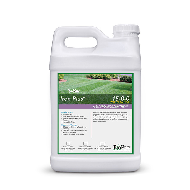 Iron Plus contains seaweed extracts as well as organic acid chelators to stabilize nutrients, and to extend and enhance plant uptake.