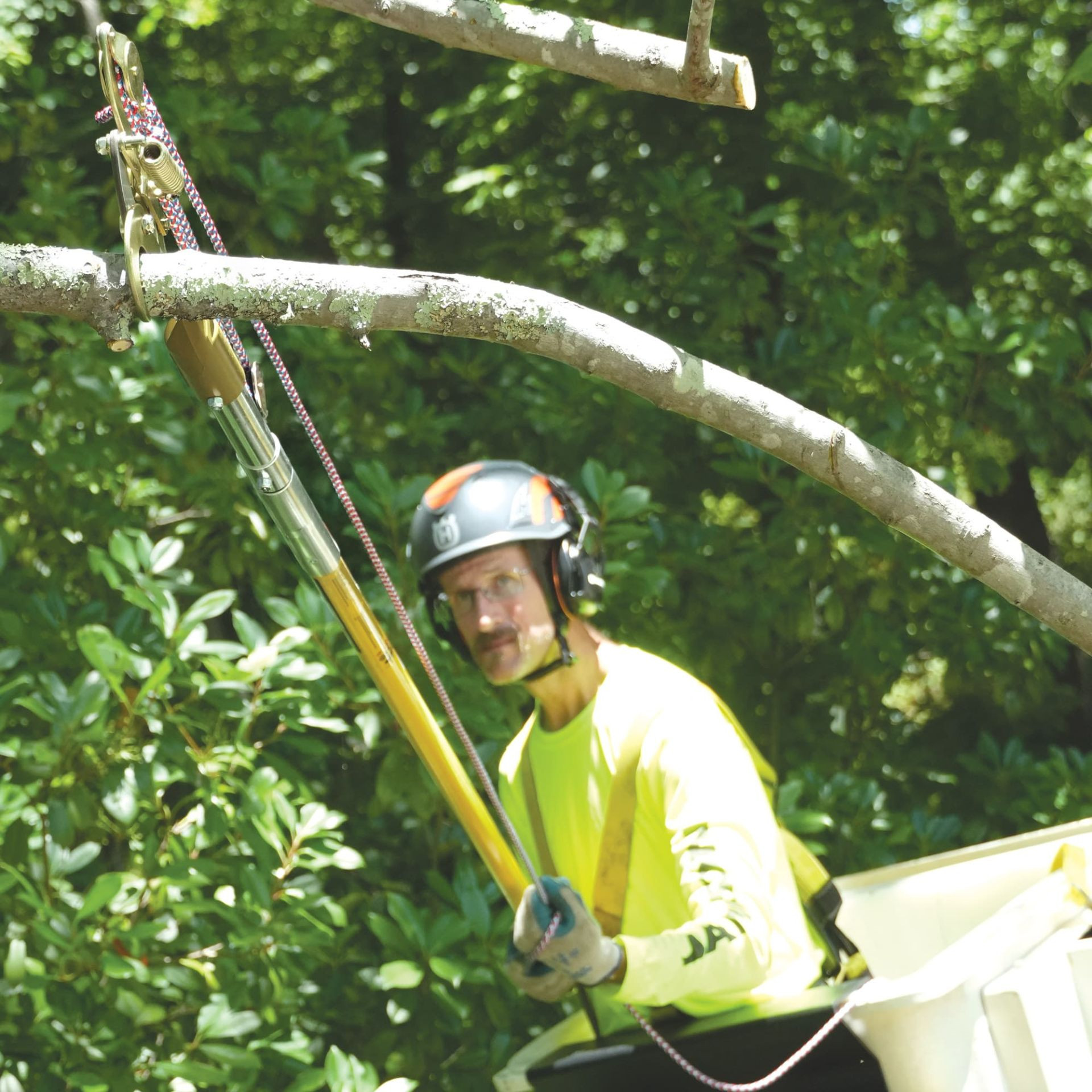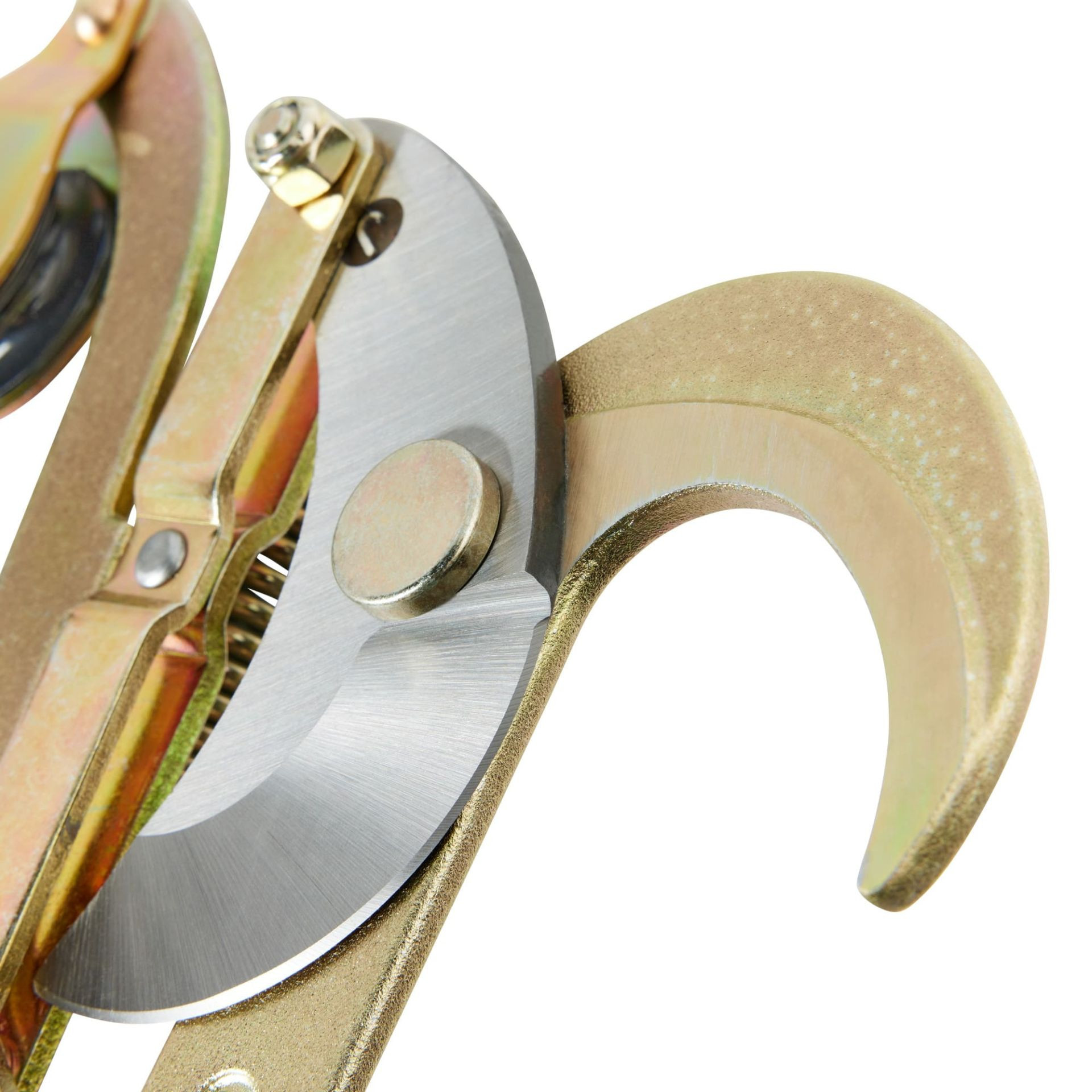 This double pulley pruner was manufactured with forged steel components for strength, designed for the professional arborist. These heavy duty pruners have a 1-3/4 in. cut capacity with side cut action. The double pulley feature reduces the pulling force needed to make the cut. The pruner also features an enhanced spring for smoother cutting action and a raised hook edge to reduce blade drag. Features a removable upper spring pin and blade bolt for easy blade replacement and sharpening. Includes (1) pruner, (1) pole adapter and (1) 20-foot pruning rope.