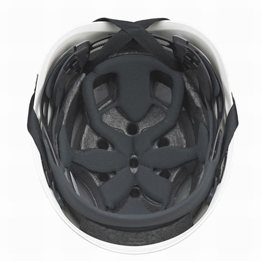 The high-density ABS plastic outer shell is designed to withstand significant impact from above or from the side, and meets CE EN 397 and CE EN 12492 standards. The high-density polystyrene inner shell has ducts, allowing for natural air flow and heat cycling. Inner padding consists of two pieces—a soft polyethylene headband and disc, both of which are removable and washable. The liner is made of anti-allergic, moisture-absorbent, odor-resistant fabric.