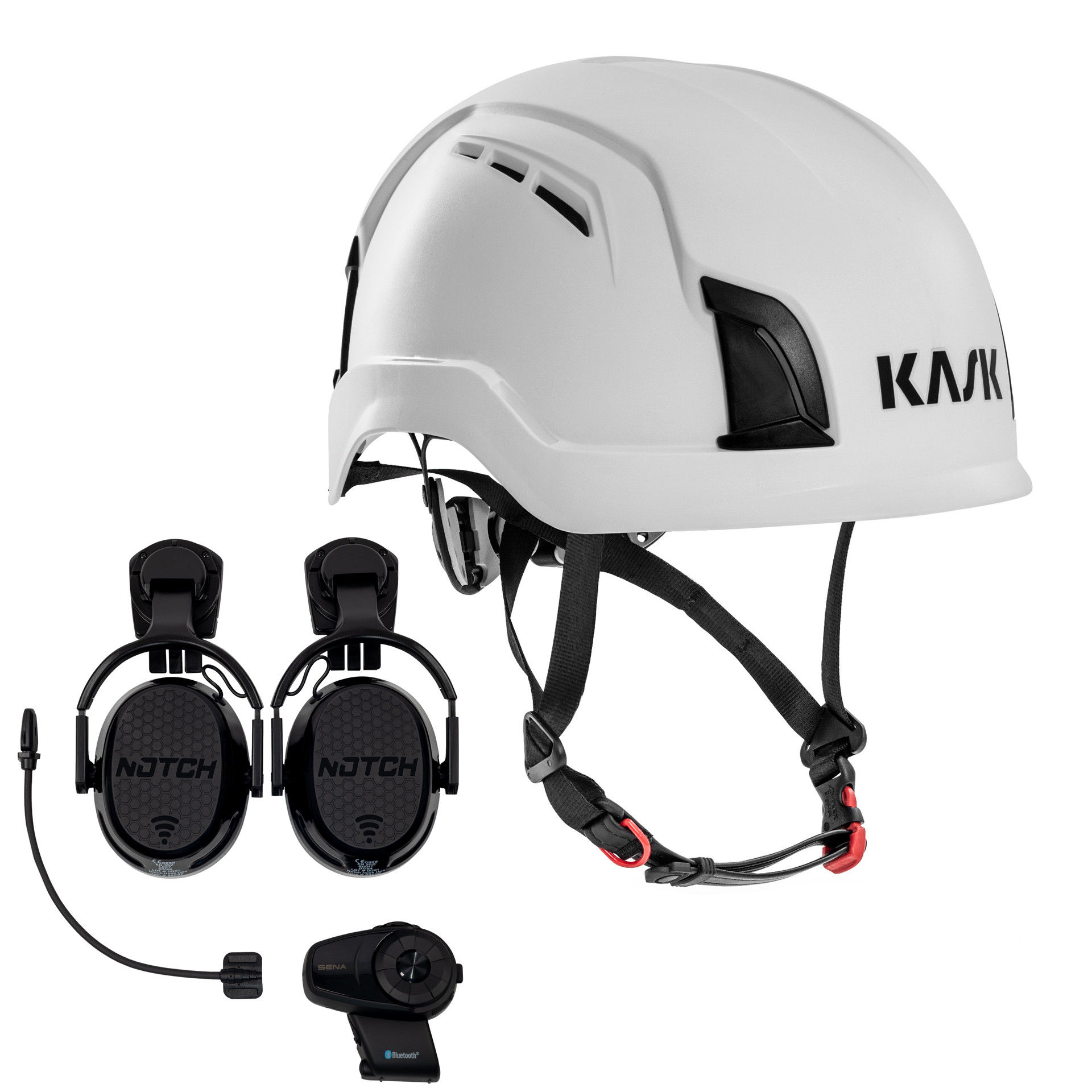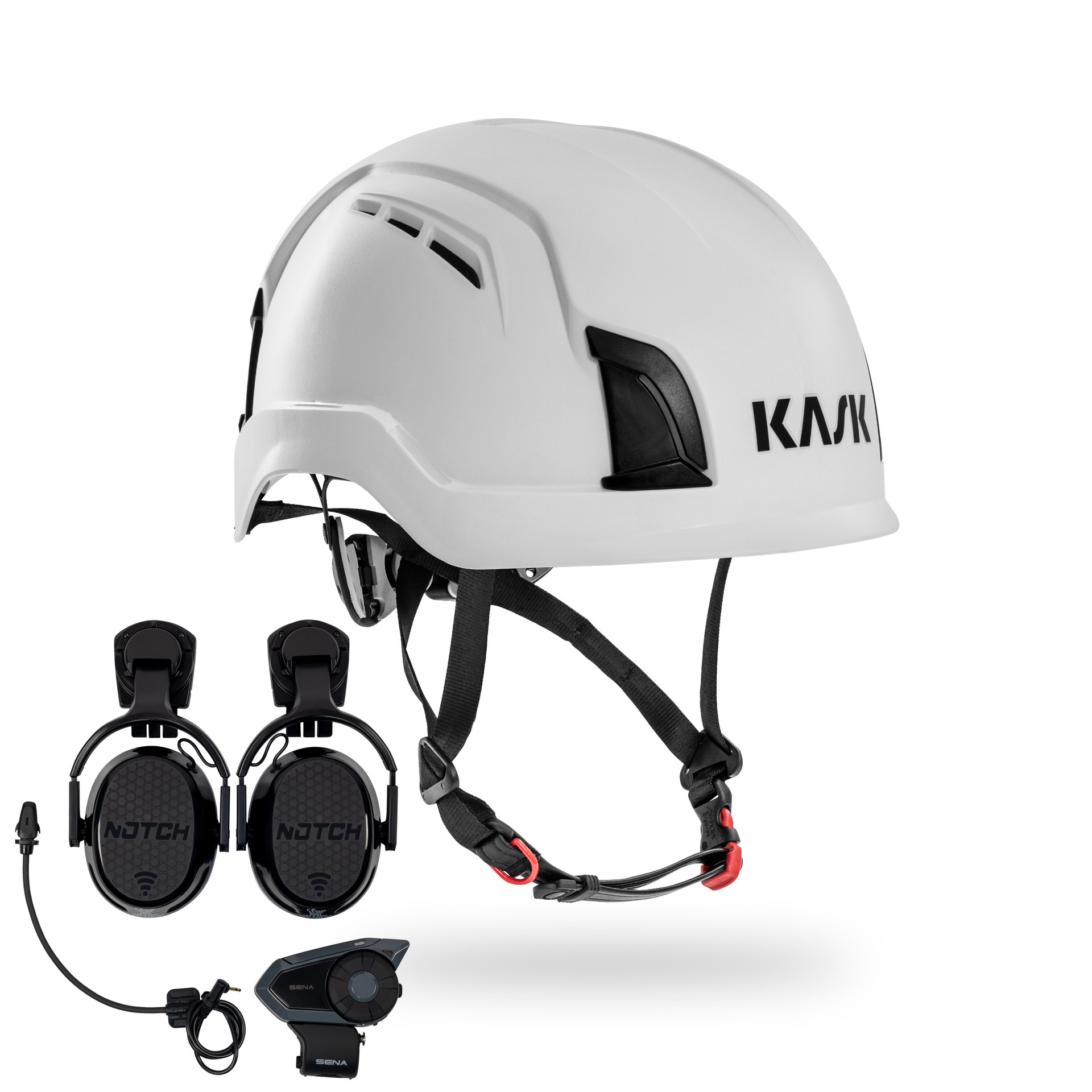 Notch Hook Ups w/ SENA 30ki: For big crews, or those who need enhanced connectivity and audio features, the 30k is the way to go. It offers extended intercom range, advanced noise control, and superior audio quality. The 30k also includes MESH compatibility making linking units or using more than 4 units much easier- making it the premium choice for professional arborists who demand the best.