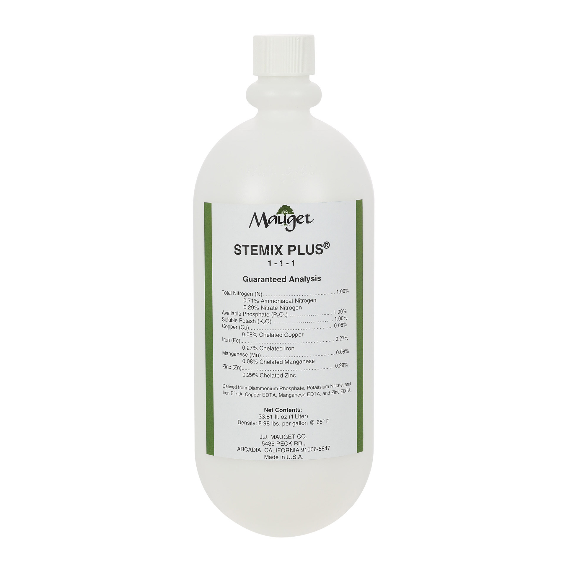 1.21% N, 0.92% P2O5, 1% K, 0.18% Ca, 0.08% Cu, 0.27% Fe, 0.09% Mg, 0.08% Mn, 0.29% Zn