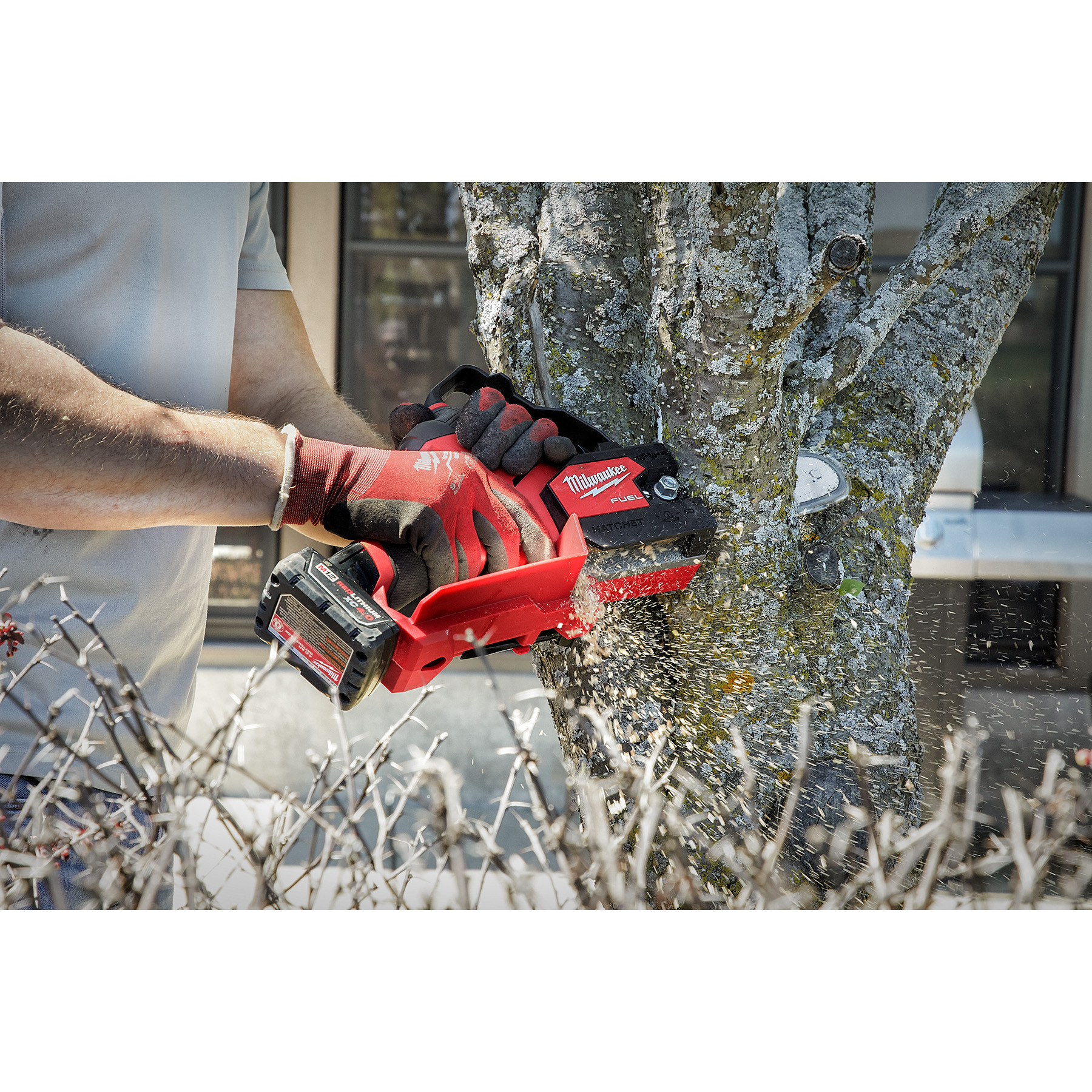 Kit Includes: M12 FUEL™ HATCHET™ Pruning Saw, M12™ REDLITHIUM™ XC 4.0 Battery Pack, M12™ Charger, Oregon 6" Bar & Chain, Scabbard, and Scrench.