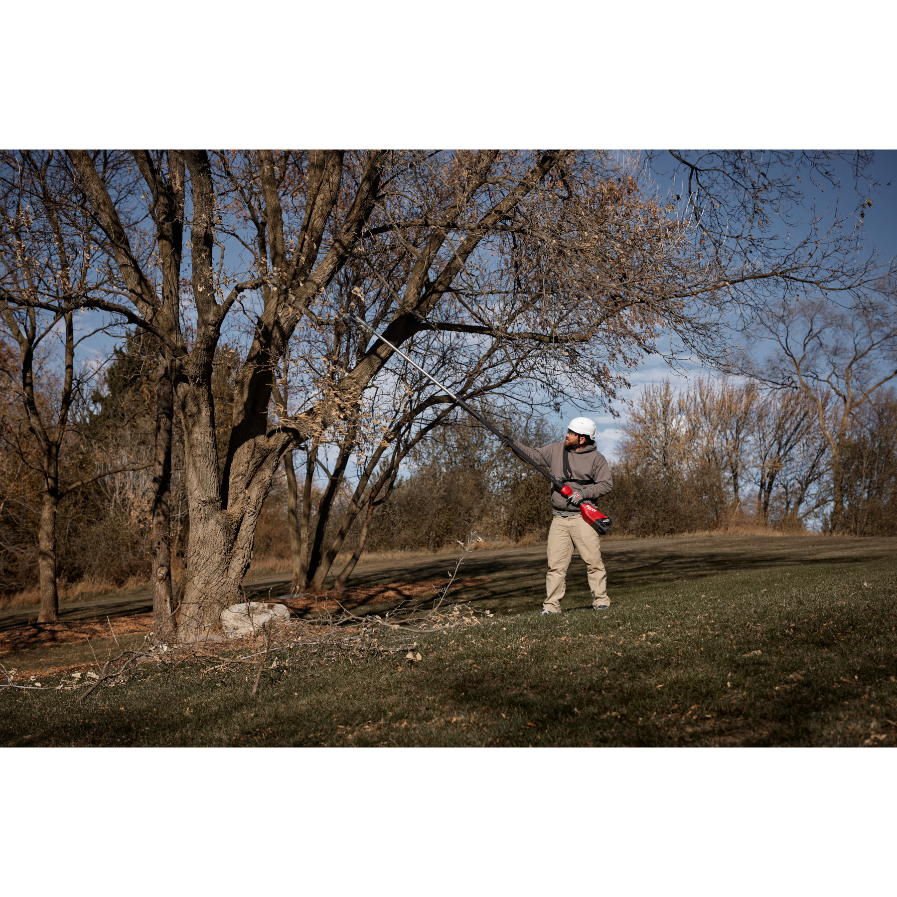 The M18™ Brushless Telescoping Pole Pruning Shear reduces peak muscle activation up to 80% and completes challenging applications up to 3X faster than manual solutions. When paired with our M18™ REDLITHIUM™ HIGH OUTPUT™ XC6.0 Battery Pack, (battery included) the telescoping pole pruning shears can complete up to 2,000 cuts per charge in 1” branches. The Milwaukee® M18™ Brushless Telescoping Pole Pruning Shears are fully compatible with 250+ solutions in the M18™ system.