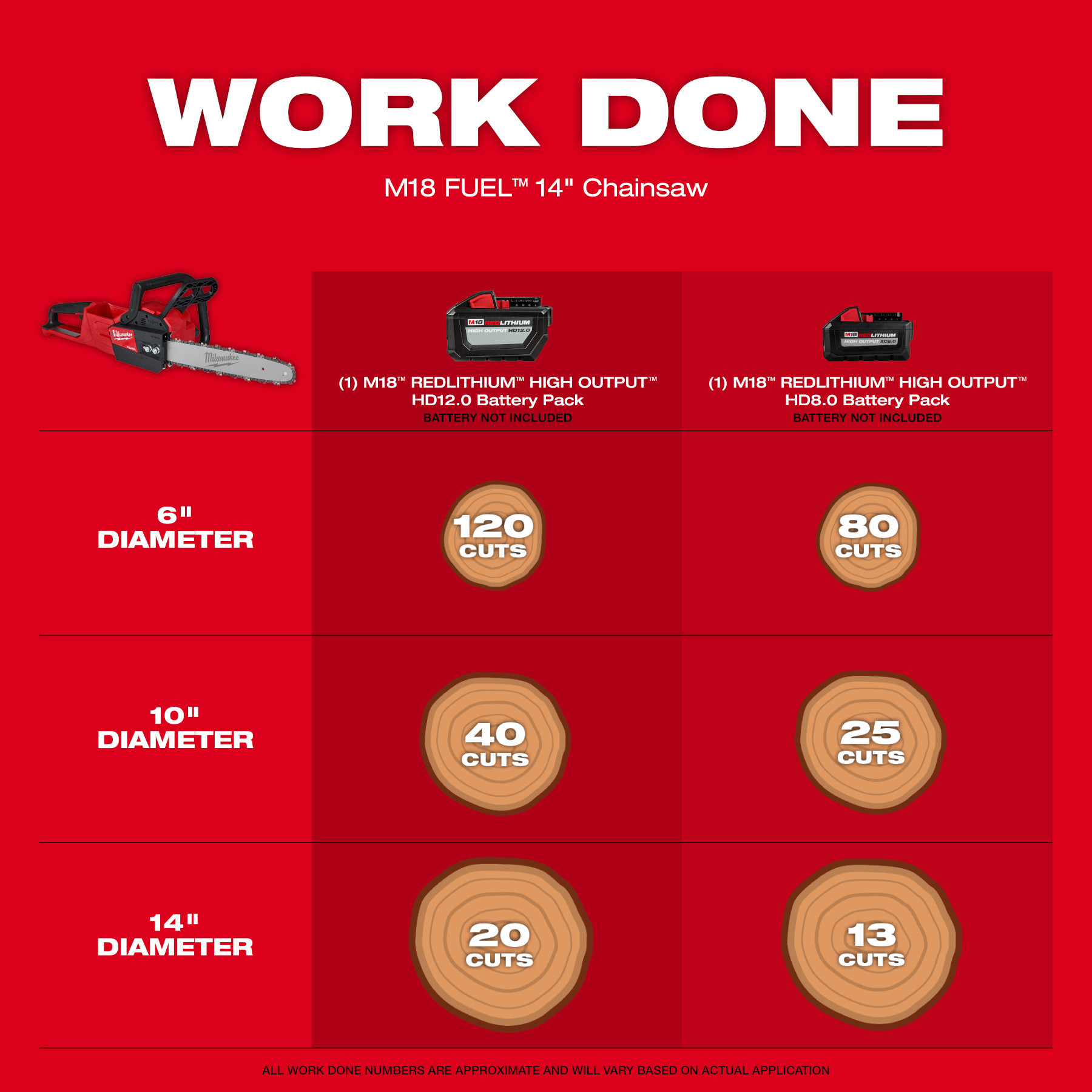 The POWERSTATE™ brushless motor sustains speed under heavy loads, outperforming small gas engines and higher voltage systems without bogging down. REDLINK Plus™ intelligence optimizes performance while protecting against overload, overheating, and over-discharge. When combined with the M18 REDLITHIUM HIGH OUTPUT™ HD12.0 battery (sold separately), it delivers exceptional run-time for any application. With M18 FUEL™ technology, the chainsaw reaches full throttle in under a second, ensuring maximum control and productivity.