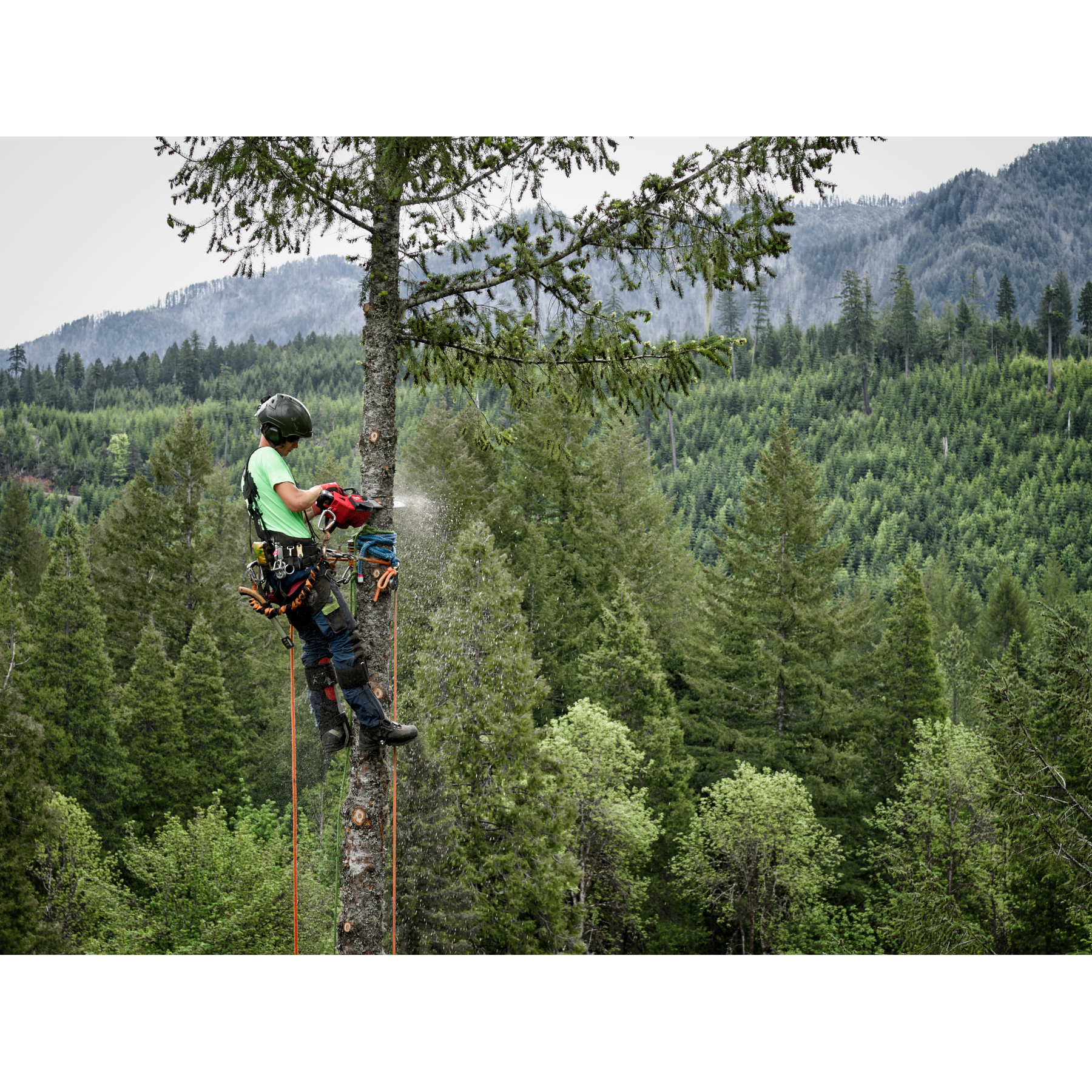 - Translucent oil reservoir allows for clear visibility to oil levels Climbing scabbard covers bucking spikes, locks on to saw, and has tie off points for aerial applications