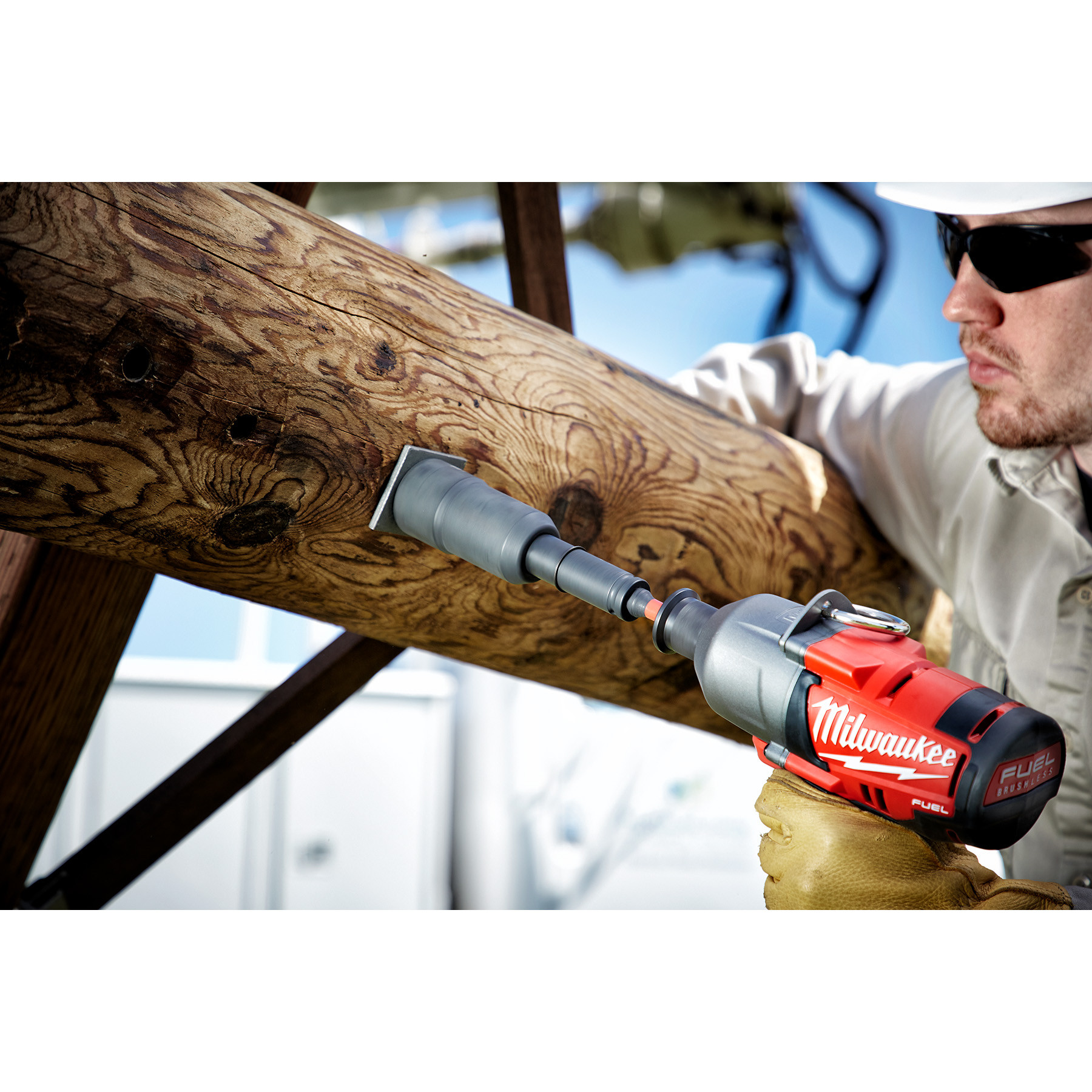 The push and twist barrel lock allows for secure, one-handed size changes, even while wearing gloves. The socket features an interior debris shield that resists interior rust and corrosion from dirt, wood chips and moisture from the jobsite.