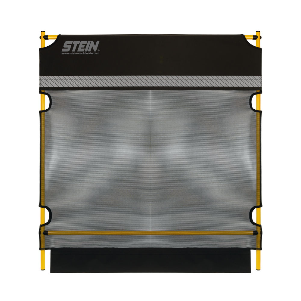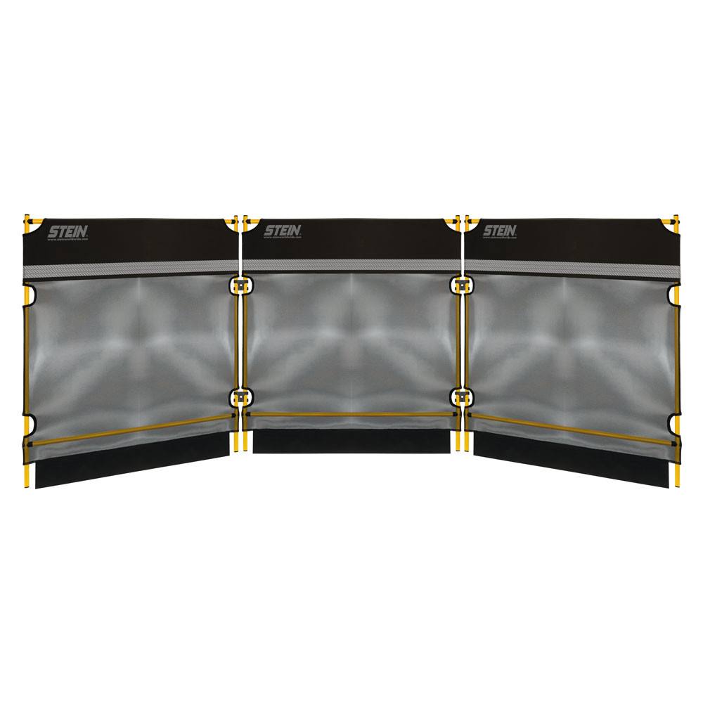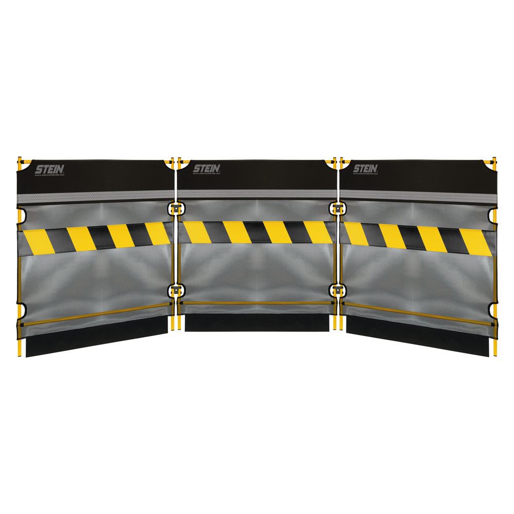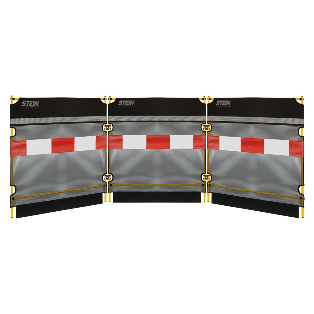 Each of the steel frames is covered in a durable double layered close knit black mesh allowing wind to pass through. Each panel has a High Visibility X25 Reflective stripe applied.