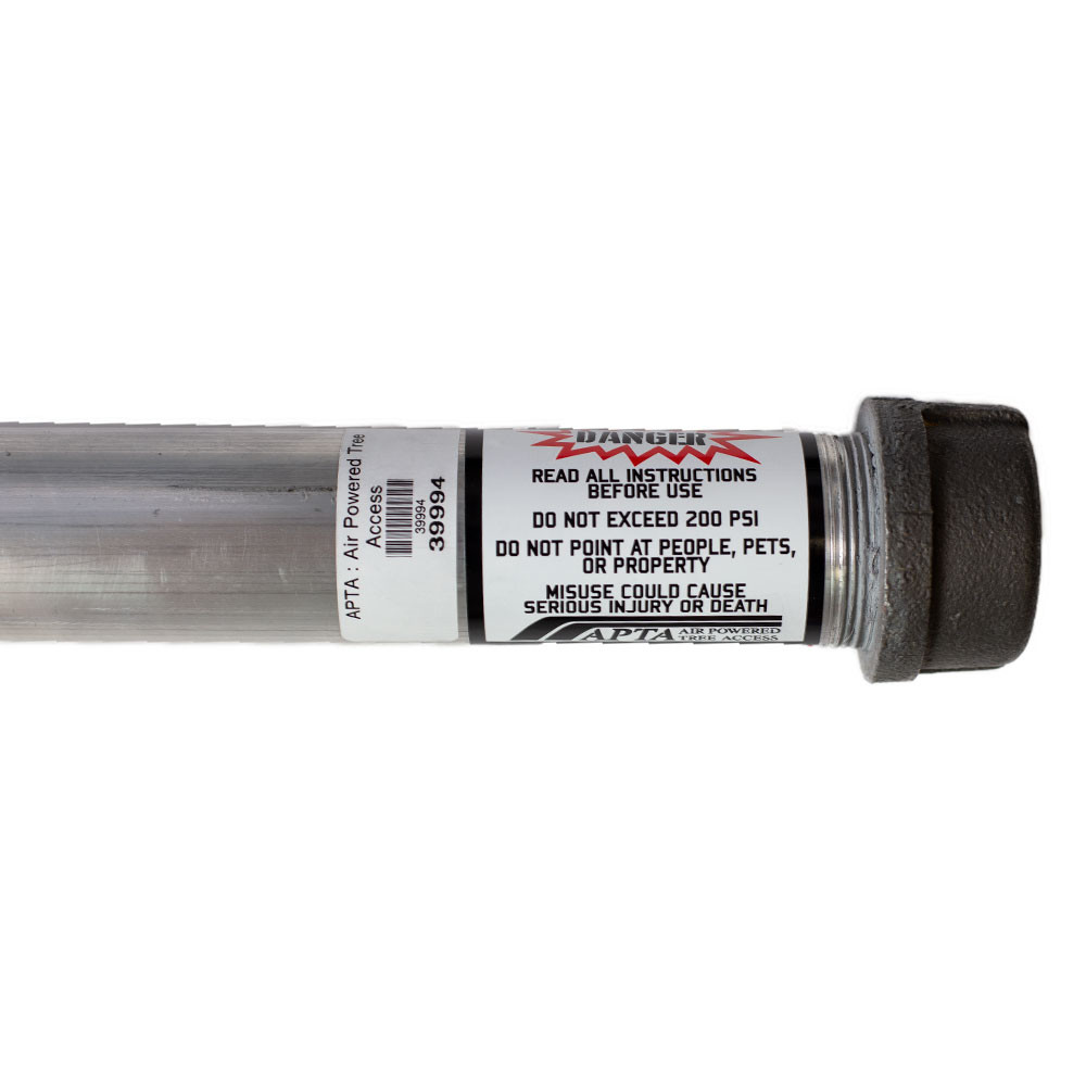 Combined with a basic bike pump (not included) or metered air connection the aluminum APTA-85 line launcher allows users to quickly set lines at heights in excess of 100'.