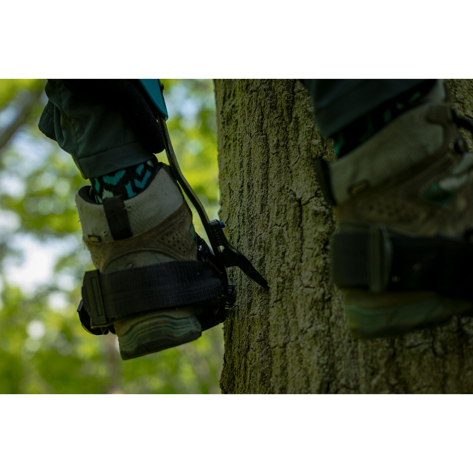 Notch Steel Climbers are thoughtfully designed and 100% focused on comfort. An advanced lightweight shank provides a more natural foot angle to prevent pressure points and fatigue so your feet don’t hurt at the end of the day. The adjustable cuff allows you to fit the comfortable foam pad on the correct spot on your leg to help disperse pressure and prevent pain in your shins. The new dual buckle system offers improved stability and allows you to use them with a wider variety of climbing boots. Once you set the heel to your preferred position, just tighten the instep strap to keep your foot securely in place. Only having to tighten and loosen the instep strap makes it easy to get the climbers off and on quickly.
