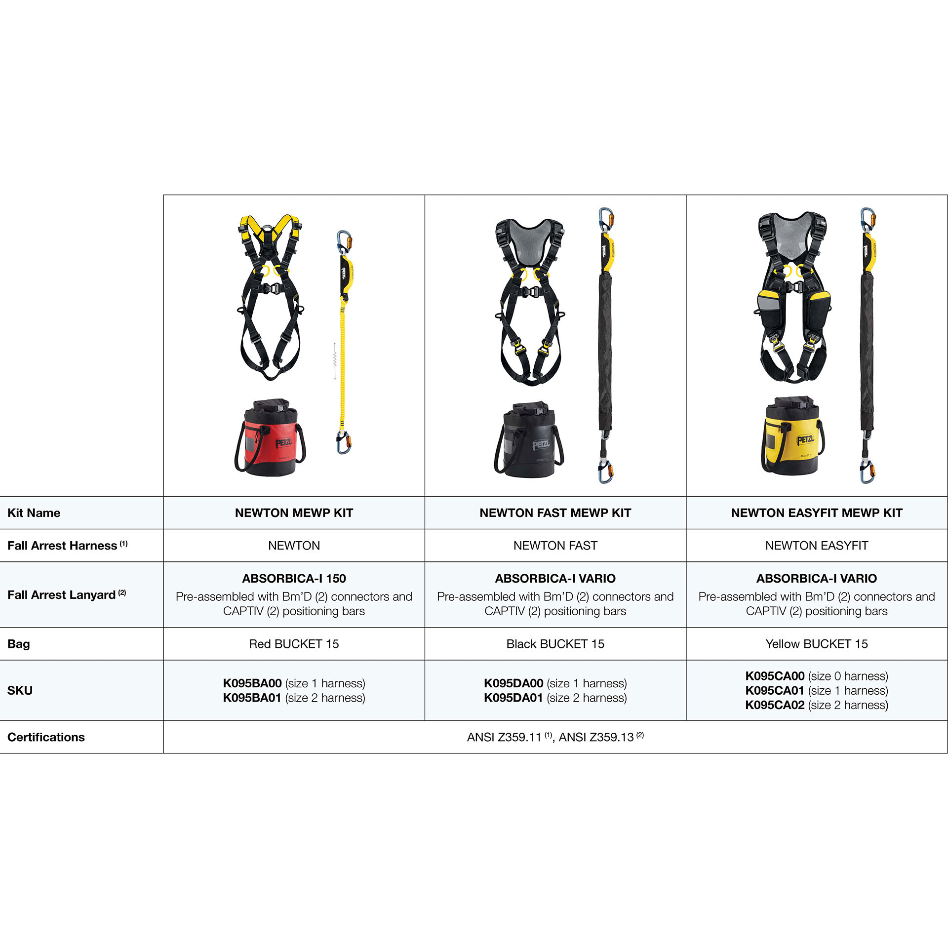 Depending on your needs and harness size, there are three kits to choose from: NEWTON MEWP Kit, NEWTON FAST MEWP Kit, and NEWTON EASYFIT MEWP Kit.