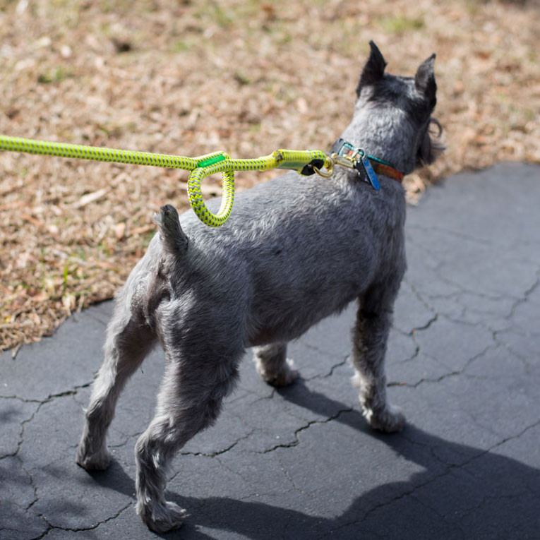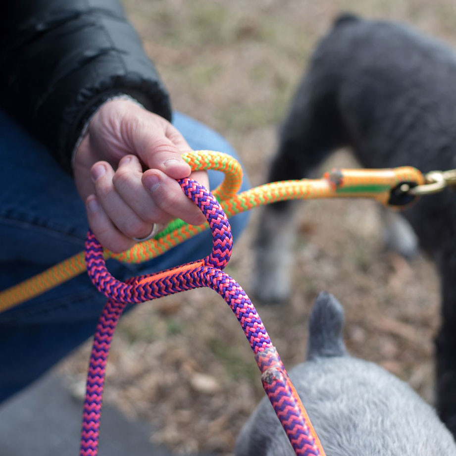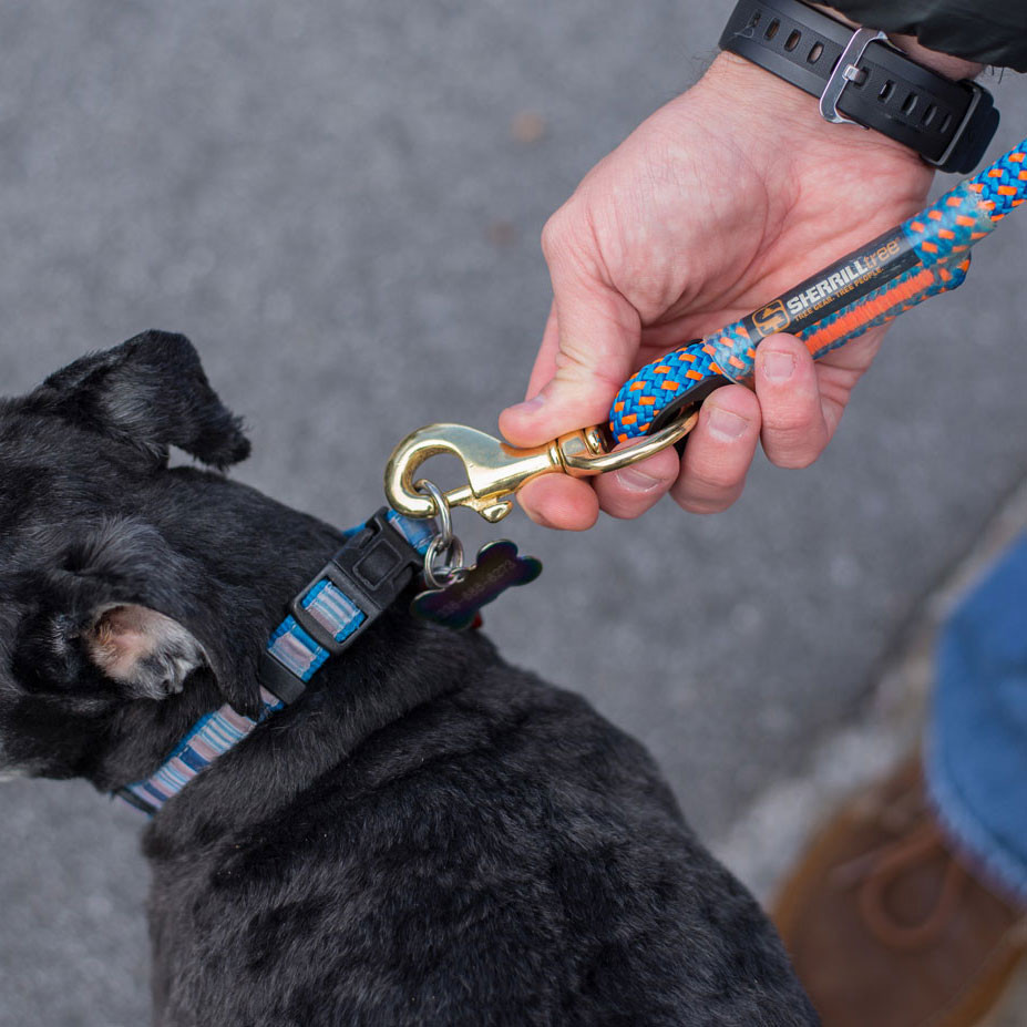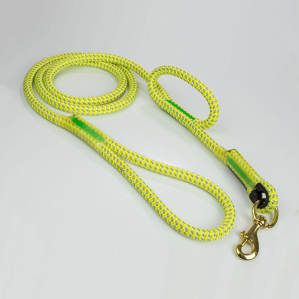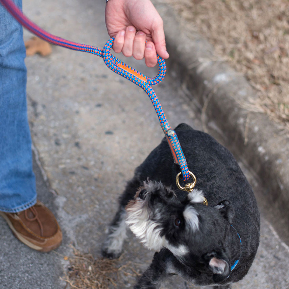 These 6' dog leashes are made with Calamine, Lava Orange, Lava Surge, Tendril Neon Green or Tropical Ivy climbing ropes. Which means it is TOUGH! These ropes are made to be used in trees in the worst conditions, so it will not only survive Mr. Bigglesworth's abuse but there is almost no way they are going to break it. The stitching is unique, the thread is thick and designed to be super abrasion resistant (not your mom's sewing thread). If you are looking for a leash that not only looks nice and will last a life time. But will also take a beating, then this leash is for you.