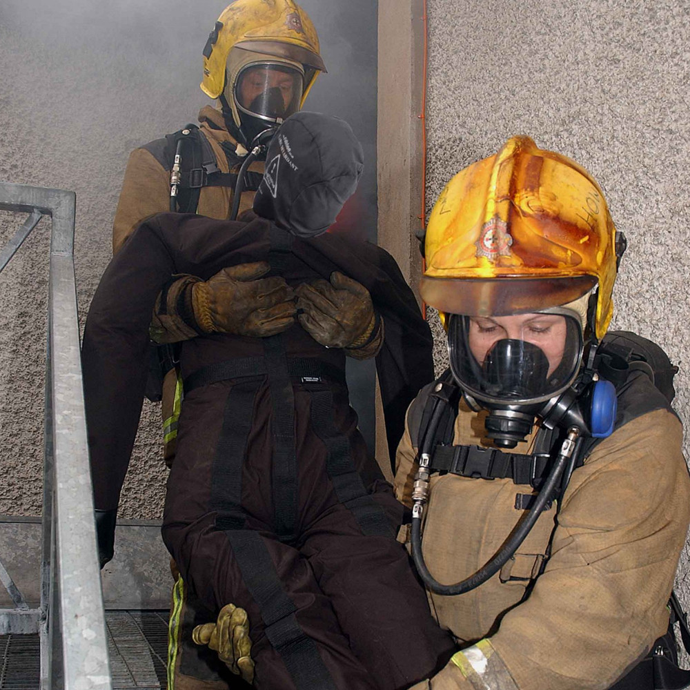 The manikin Main carcass - Constructed in the same flame retardant Polyester (conforms to BS EN ISO 15025:2002) used in Police ballistic/stab vests and reinforced with 38mm Nomex webbing as opposed to the polypropylene webbing found on the general-purpose range standard Polypropylene webbing will go brittle and melt at the high temperatures this manikin is designed to withstand.