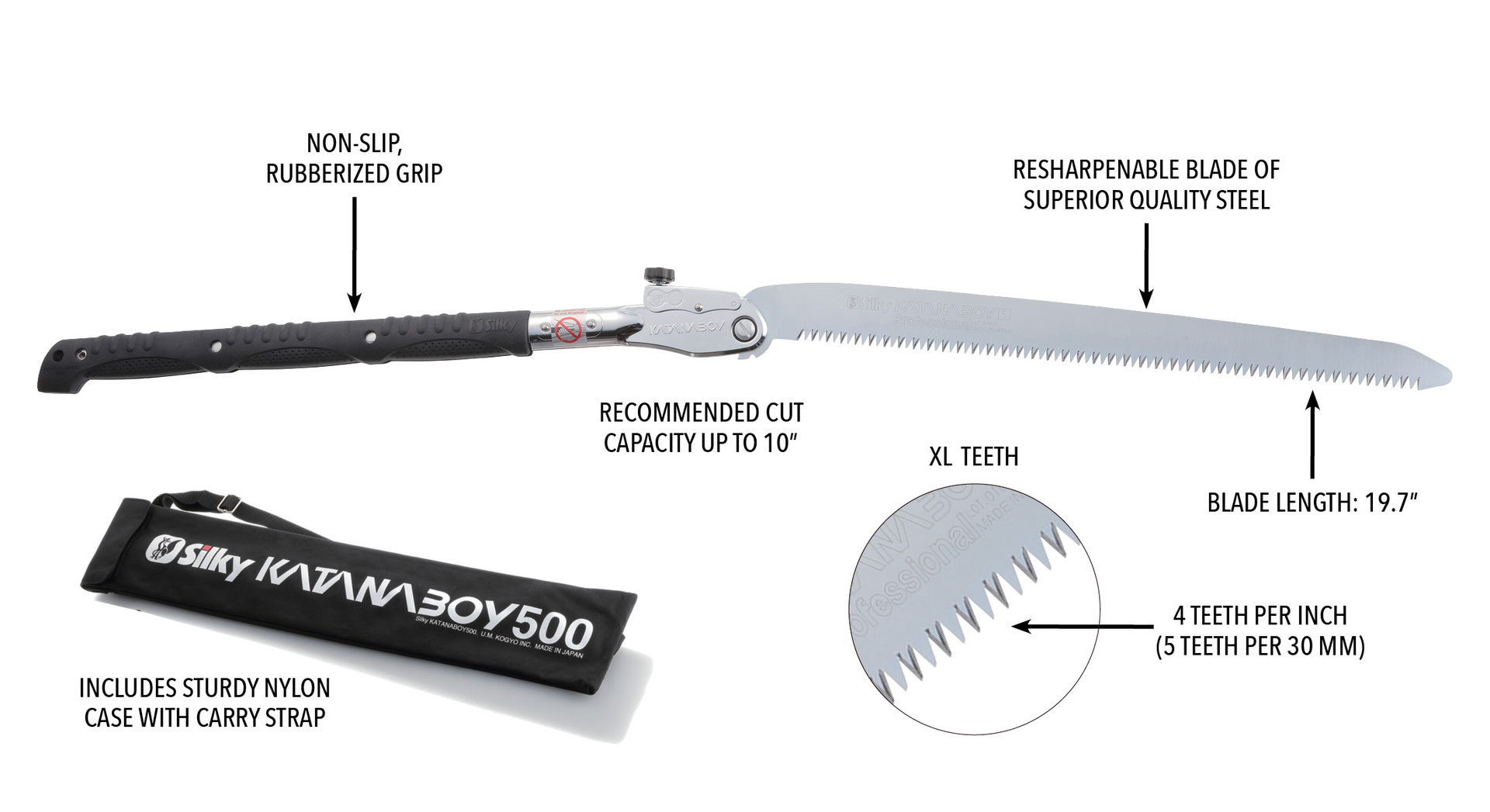 its class, this heavy-duty folding saw with a 19 4/5- or 25 3/5-inch, resharpenable blade of superior quality steel,