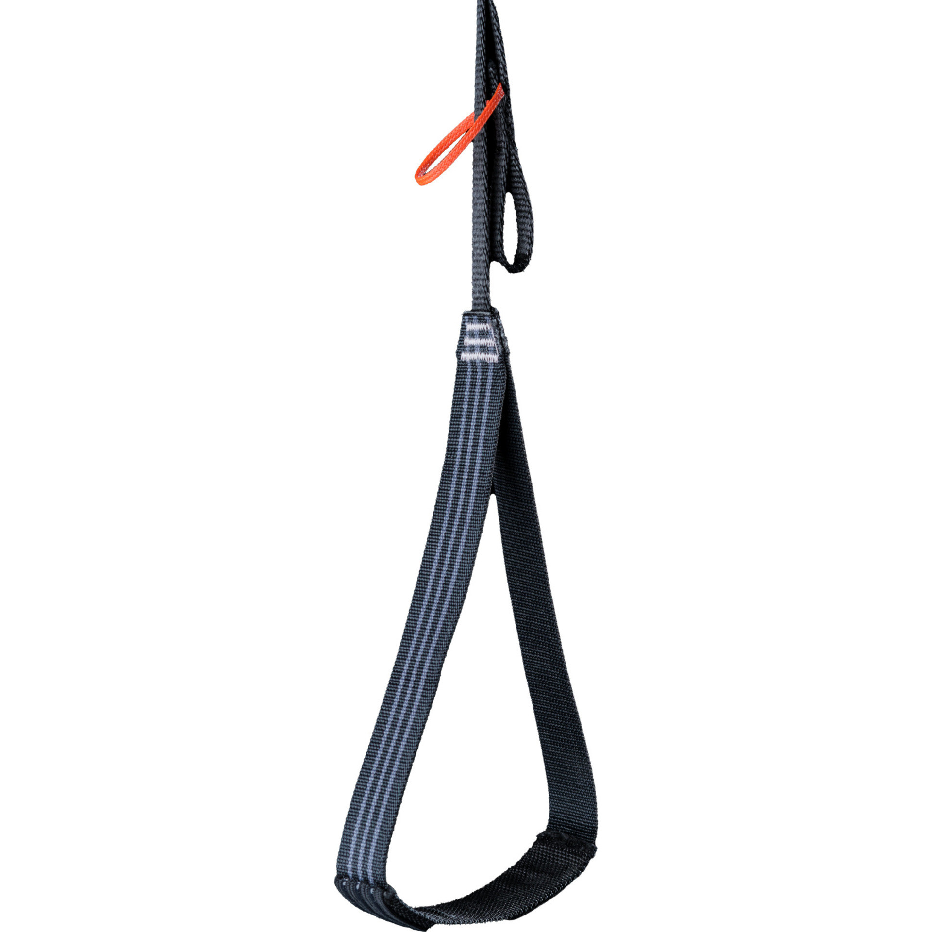 The length is tailored for potential pick-off rescues and has an additional elasticated foot attachment point in case foot loop attachment to the foot is required. The sling is made entirely of Dyneema to prevent stretching, has very good sliding properties via carabiners for pick-off rescues and a very practical pack size. The free end of the webbing is held in line with the working end by a short cord and a polymer O-ring.