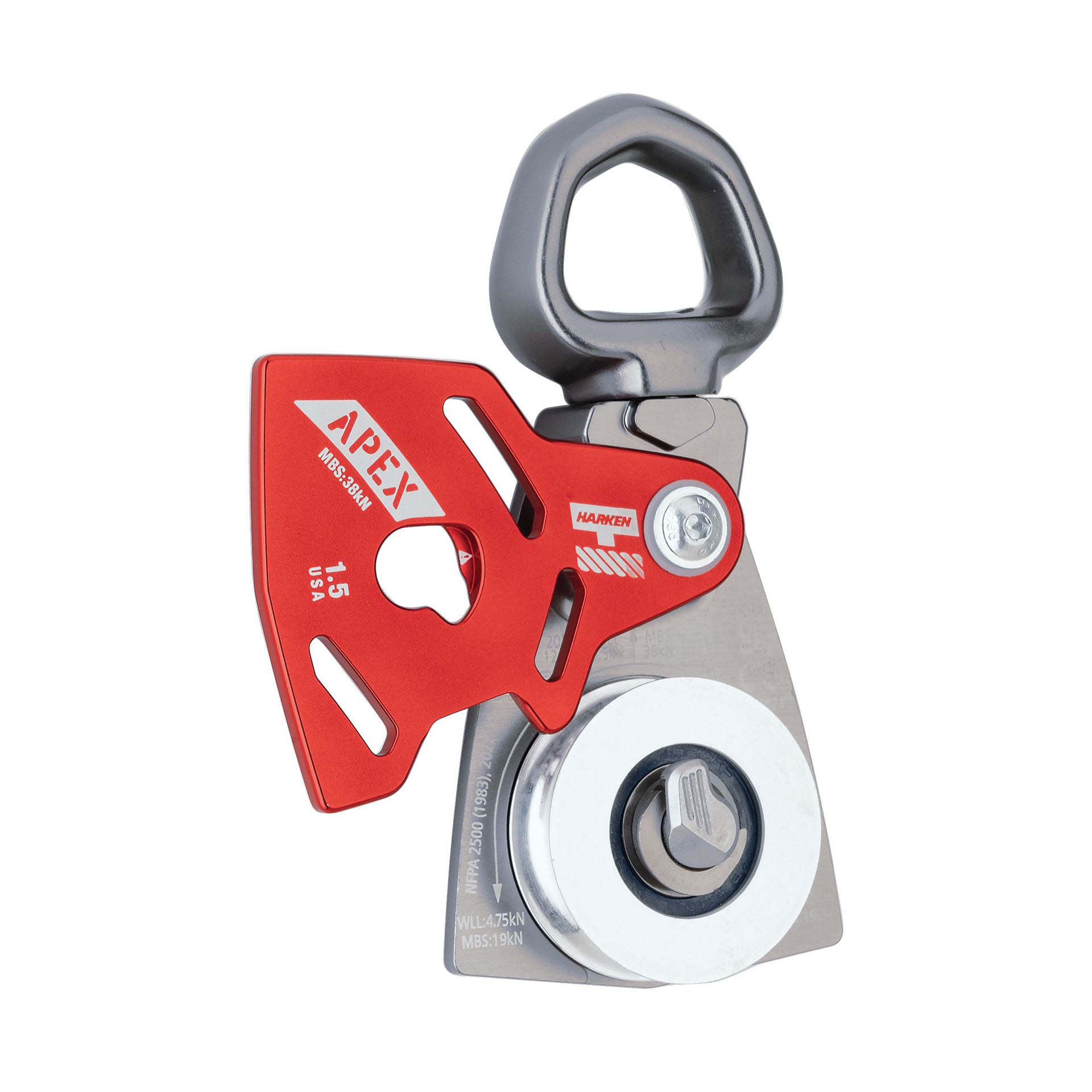 The ergonomic design of this pulley allows side plate to easily be opened one handed, while the triple action lock ensures a secure closure. The smooth, forged eye accommodates several carabiners or is textile friendly for rope and webbing connections.