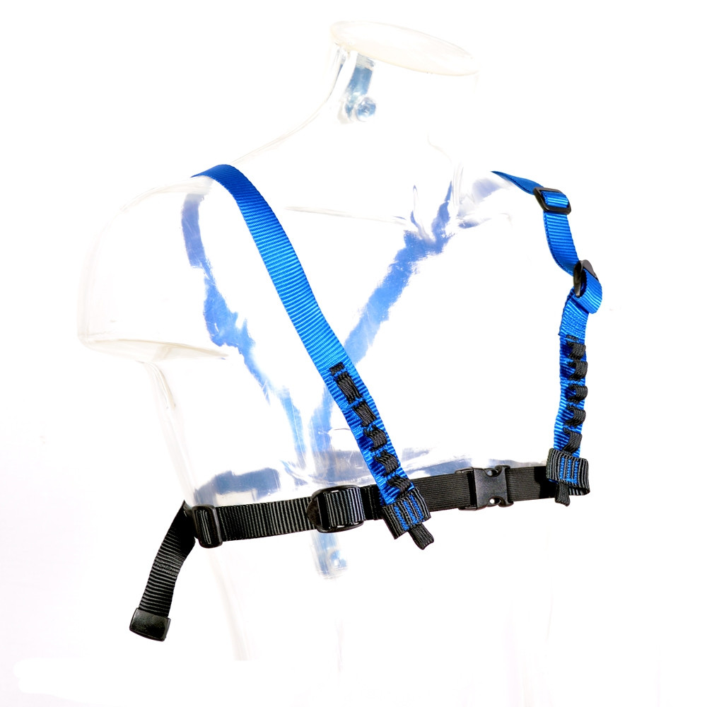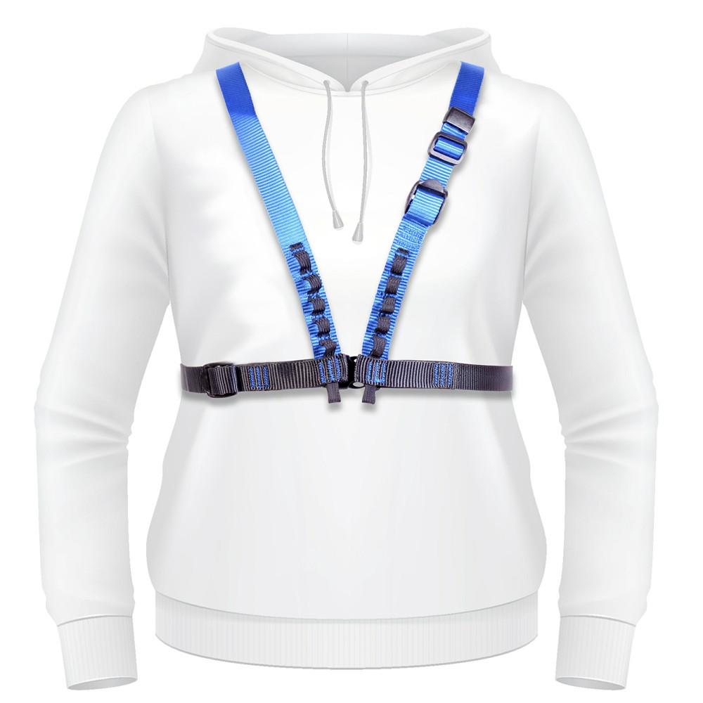 The Stein CAMBO V5 Chest Harness is fully adaptable to any body size thanks to the dual adjustment system both for Torso height and Torso width. Specifically designed with an open front V System to alleviate discomfort around the neck and throat region. Fitted with 5 upper front loops and one lower loop which are drawn together when needed allow you to decide where to hook your system in, ultimately allowing you a much greater balance of efficiency and comfort when advancing your system.