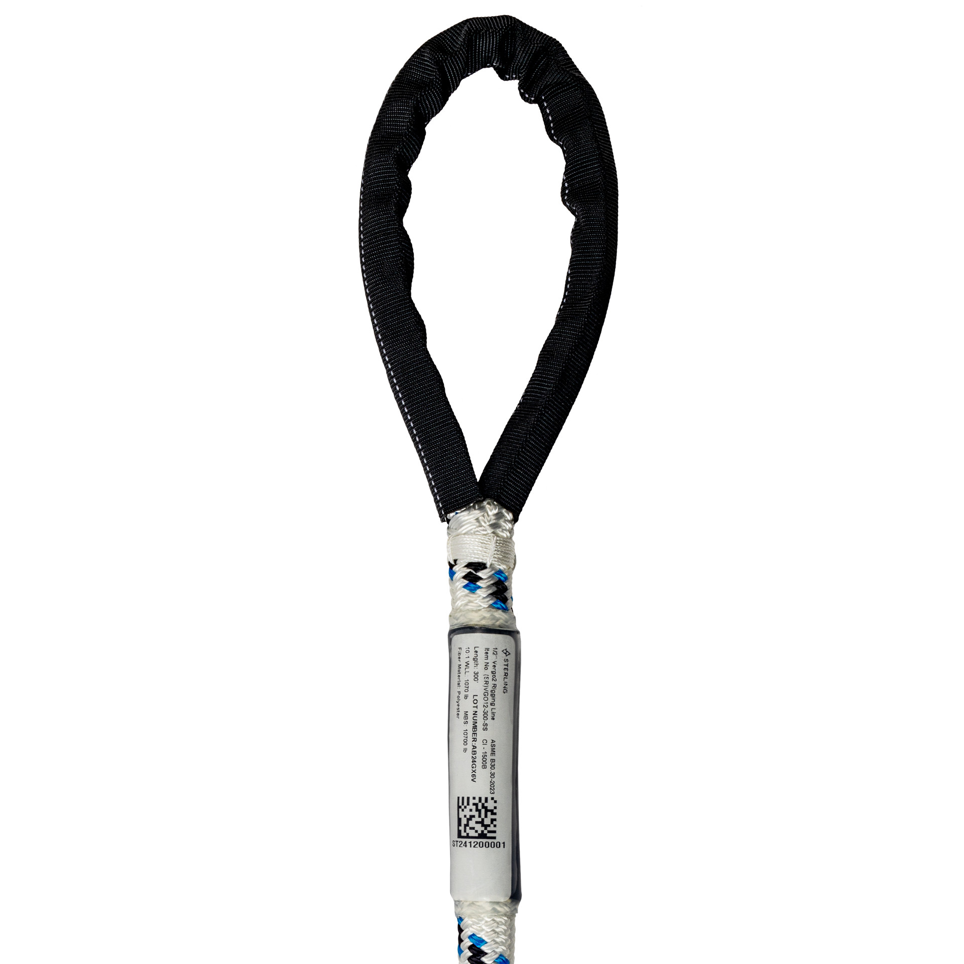 A 100% polyester double-braid utility rope designed for efficient hauling. The sheath construction resists snagging and runs smoothly with capstans and blocks. The mid-sized 1/2” VerGo2 is available in lengths ranging from 300’ to 1200’ and comes standard with a spliced eye on each end with a protective wear pad. Each diameter in the VerGo2 series of rigging ropes has a unique tracer for easy identification. Each rope is Scannable compatible and offers a data matrix on the label to track and inspect your rope.