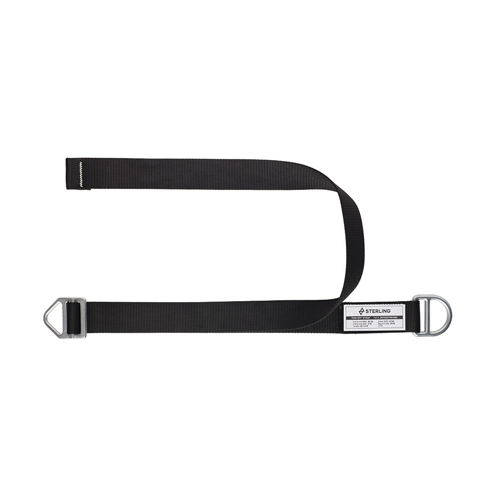 Adjustable pickoff strap allows slack to be removed from the system before transferring a load. Provides a durable anchor in two configurations: basket and straight line (end-to-end). High strength nylon webbing 1.75" wide and steel closures.