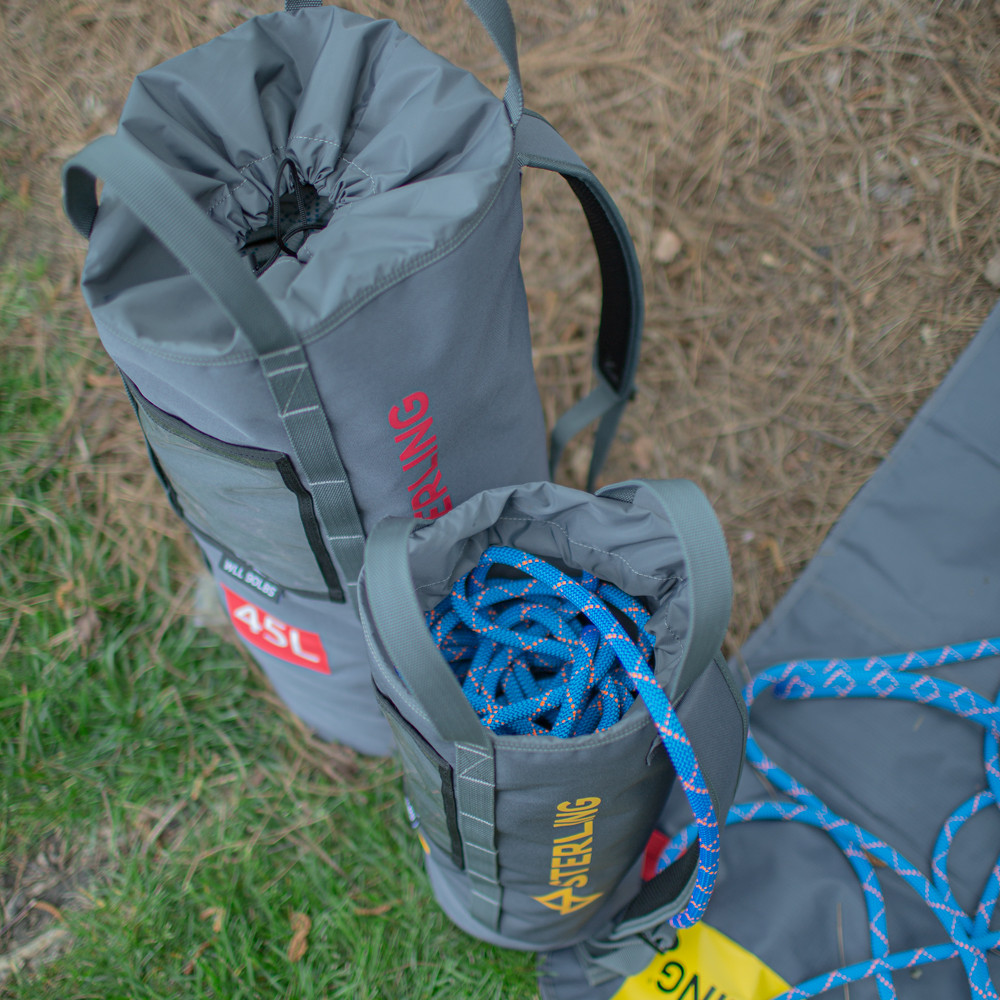 Heavy duty bags with a working load limit that makes them suitable for all rope access jobs. Made with abrasion resistant 1600D poly, reinforced carry straps and an internal liner, these bags feature comfortable shoulder straps, a WLL of 90 lbs, a clear document pocket, an information patch on bottom, a rope tie off inside as well as a drainage hole in the bottom of the bag.