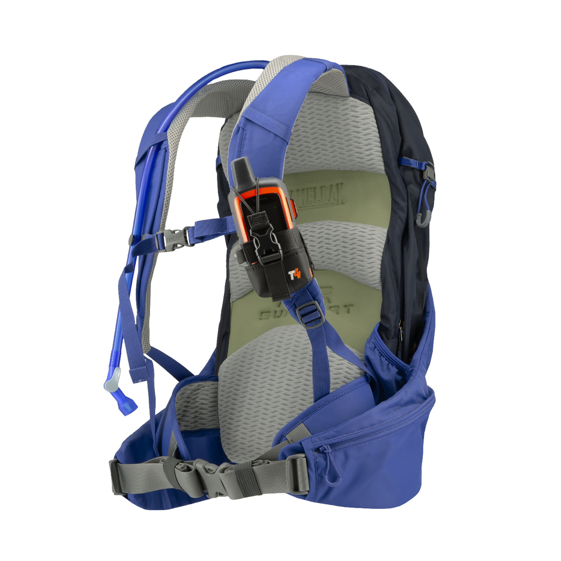 - It attaches quickly to a harness with Velcro flaps on the back.