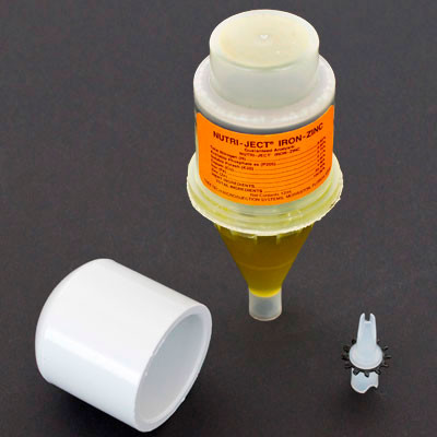 Nutri-Ject Iron Zinc is a special formulation; each microinjection unit contains 12mL of macro- and micro-nutrients, including increased iron (1%) and zinc (1%) for application in trees and woody ornamental plants.