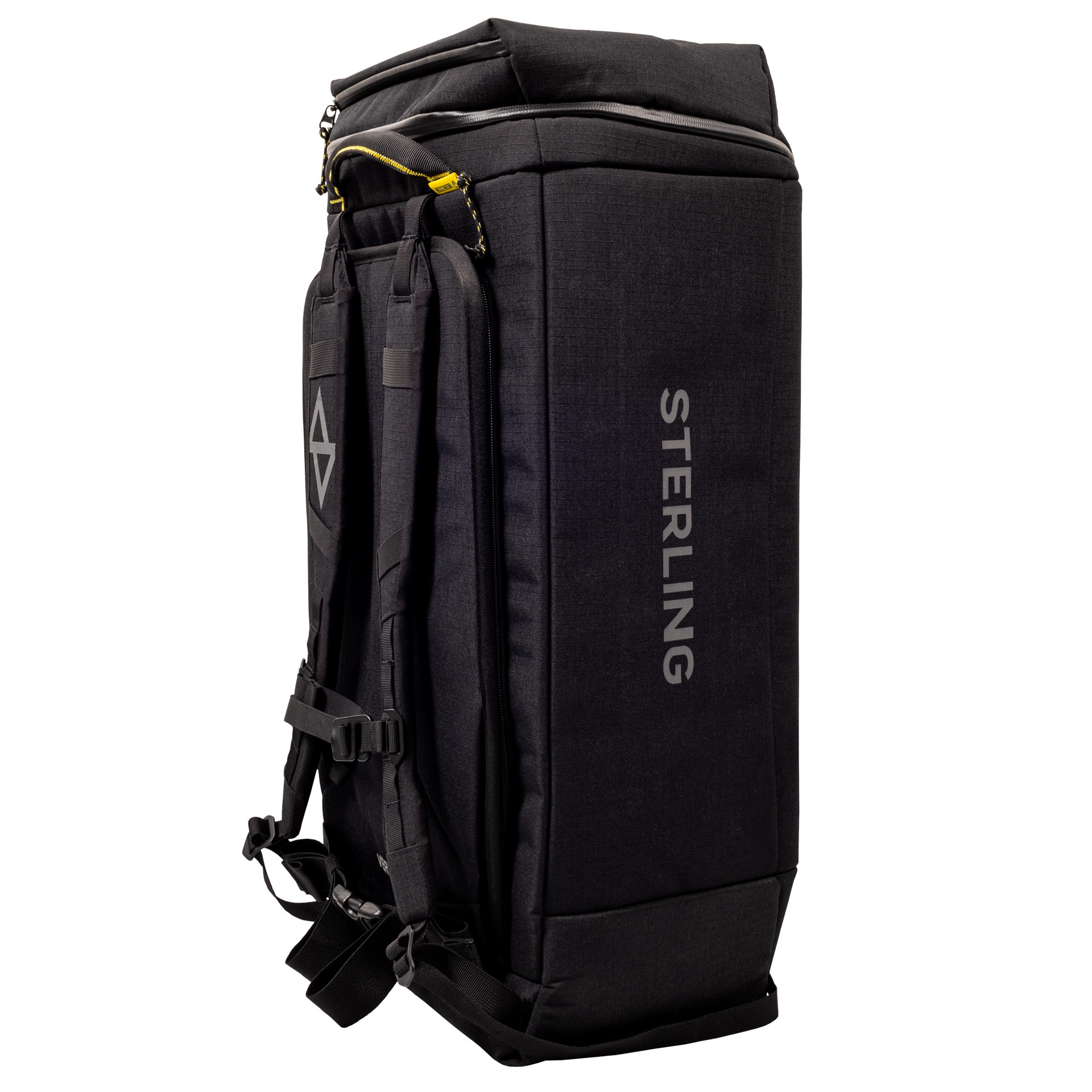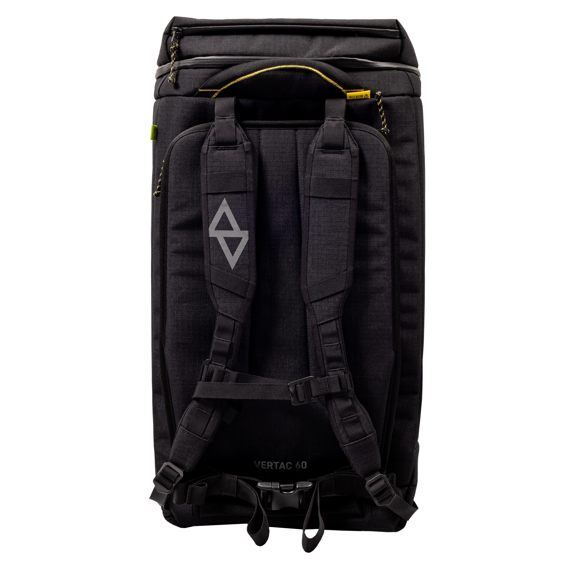 The comfortable shoulder straps can be tied together to use as a duffel and the top grab handles have a rated working load limit, making the bag at home in the vertical environment during work or play.