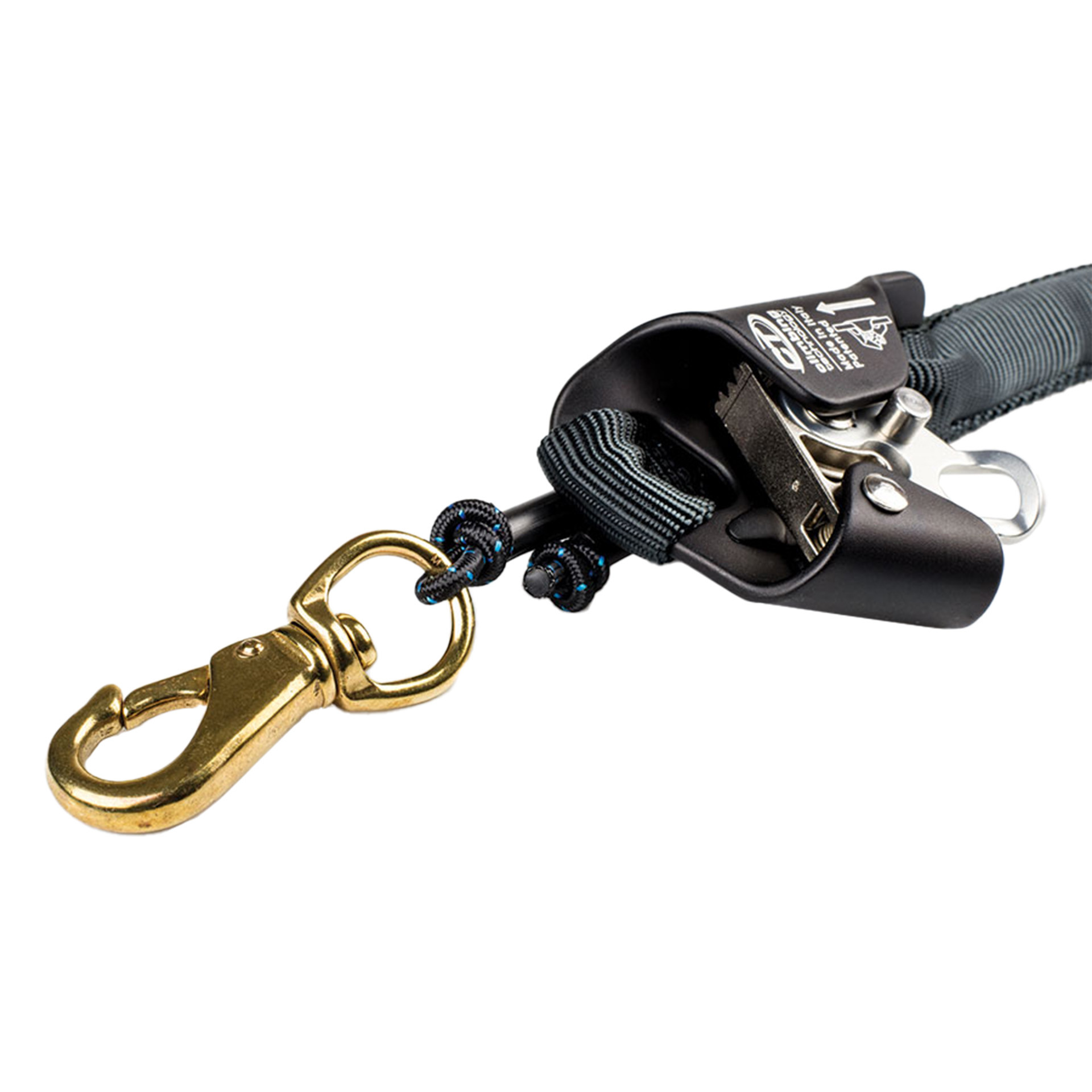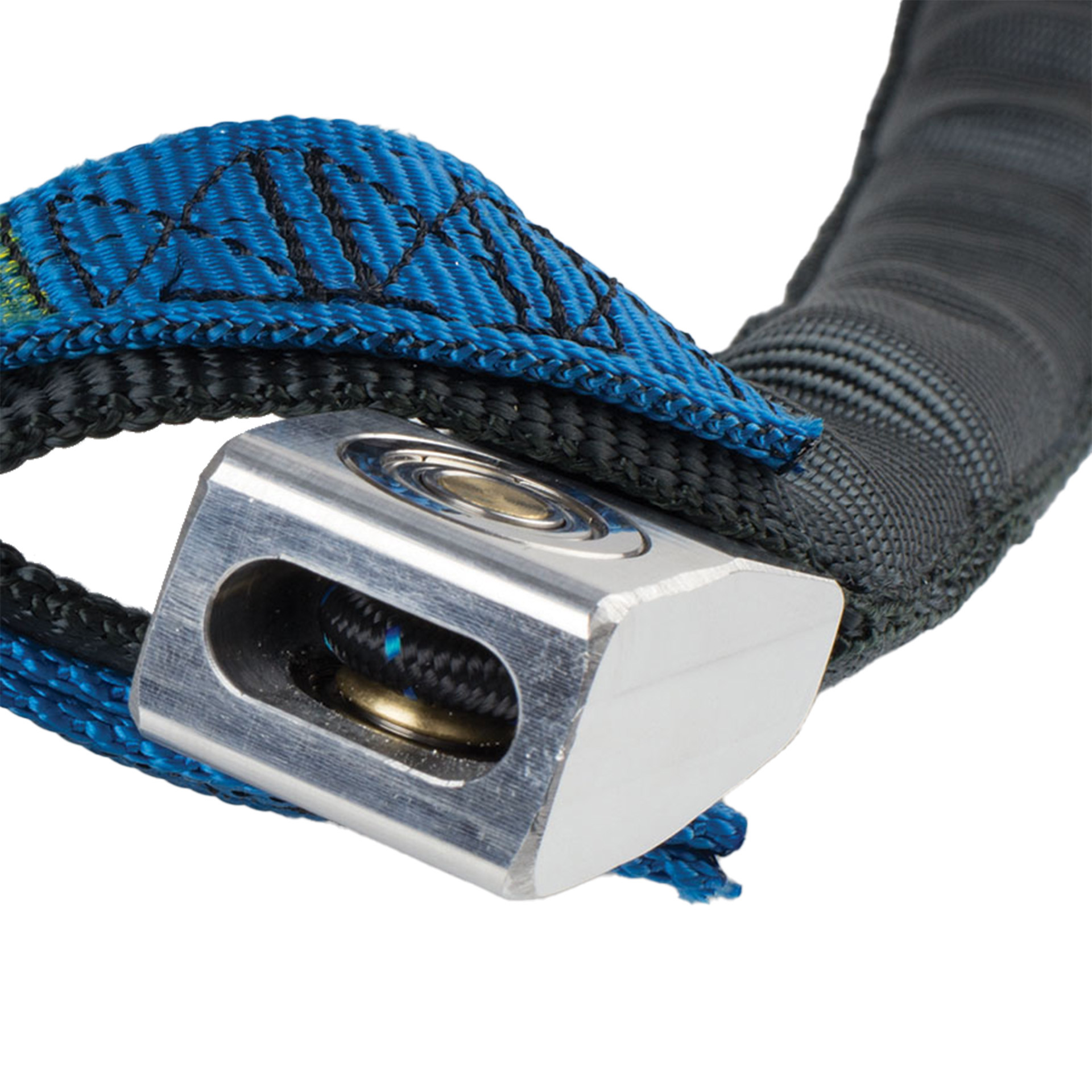 The snap is now tied just above the ascender and will extract out 30 inches, which eliminates any set up, as well as any “dead spots” in the return action. The bungee is terminated at the top of the Weaver HASS Velox, travels down though a channel to the bottom where it is wrapped around a shiv with stainless steel sealed bearings inside a machined aluminum block for maximum friction reduction. It then returns back up a second channel where it is tied to the snap. Bungee is replaceable in under 5 minutes with no tools. Made by the team at Weaver.
